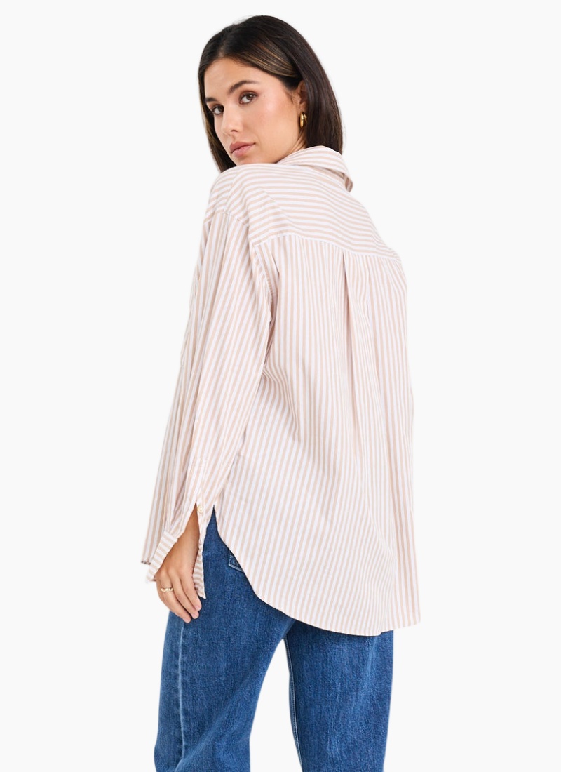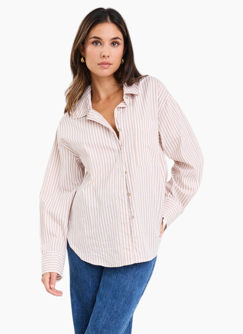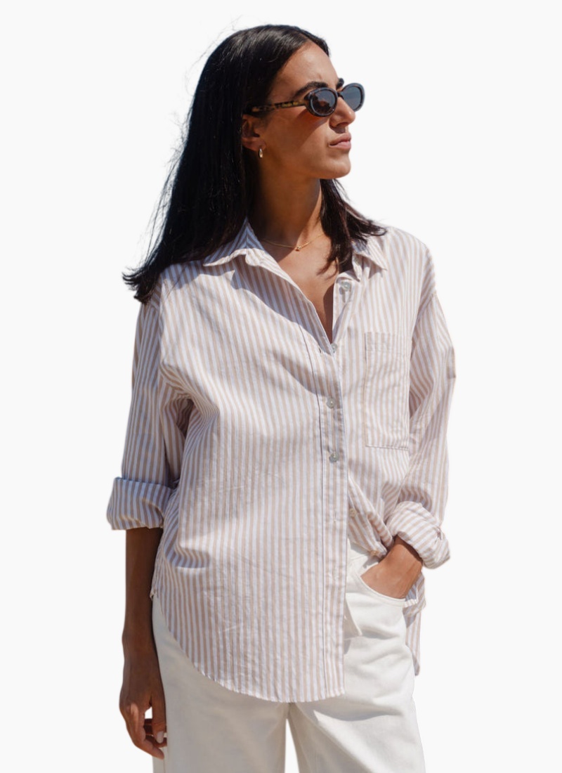 Introducing the You Got This Ecru Stripe Oversized Shirt from Among The Brave. This relaxed, contemporary piece brings effortless polish to everyday wardrobes.