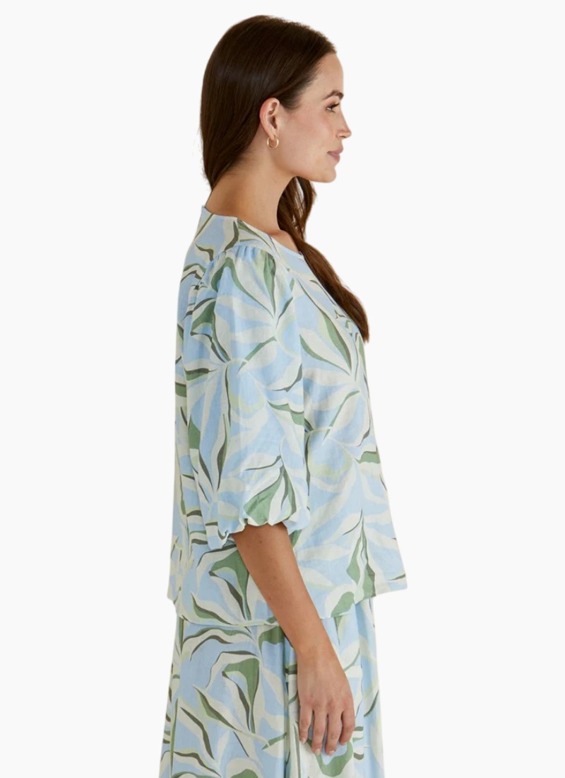 The Belize Blouse brings sophisticated comfort with a breathable viscose/linen blend fabric and balloon sleeves finished with elasticated cuffs. Its open round neckline and keyhole closure offer an elevated yet relaxed silhouette. A classic piece designed for effortless transeasonal elegance and easy styling.