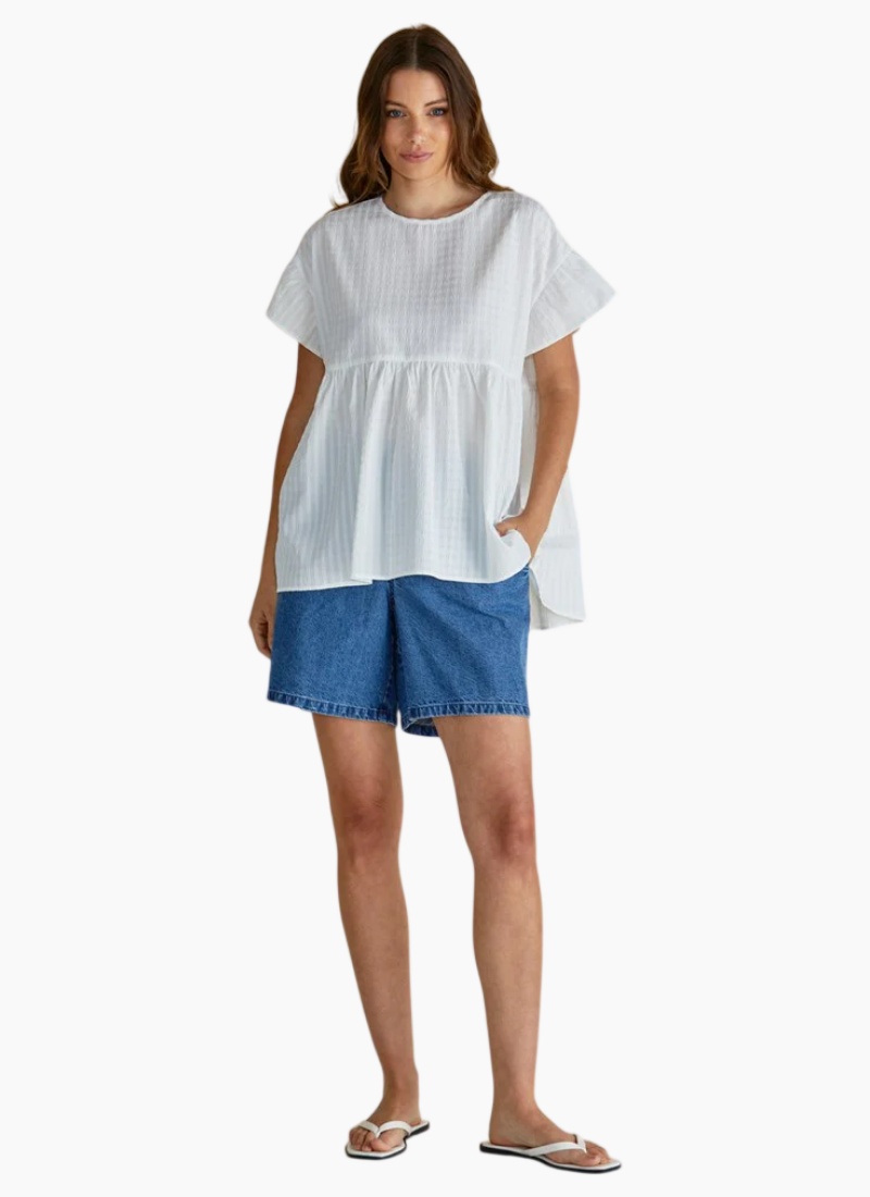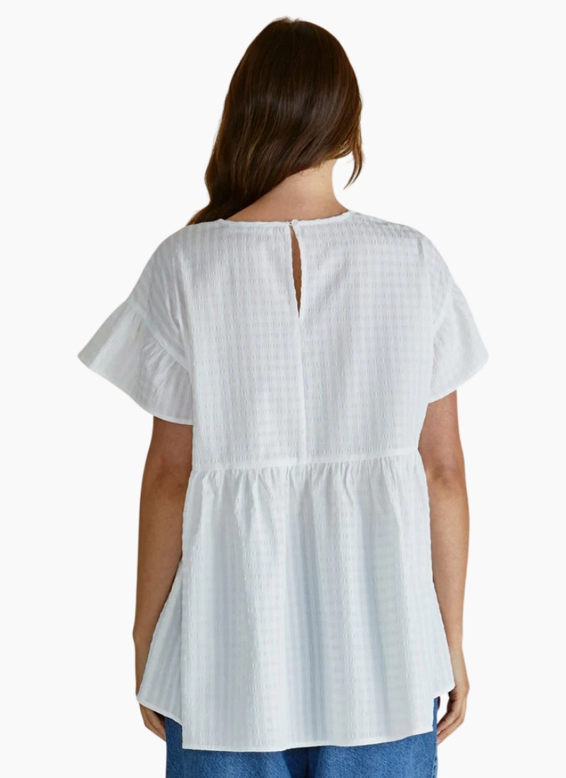 Introducing the Poppy Blouse from Betty Basics. This women's Tops piece is a breezy white blouse crafted from lightweight textured cotton, made to lift everyday outfits with effortless charm.