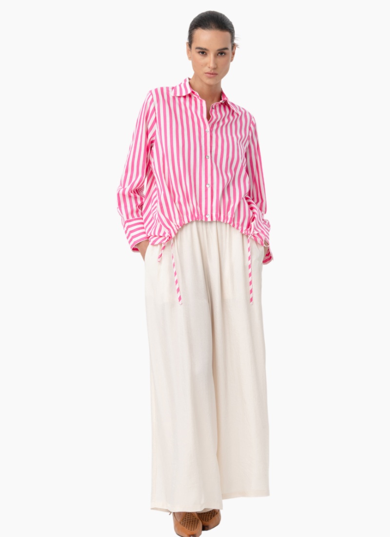- Bold pink stripe adds a modern, elongating colourway that works from office to weekend
