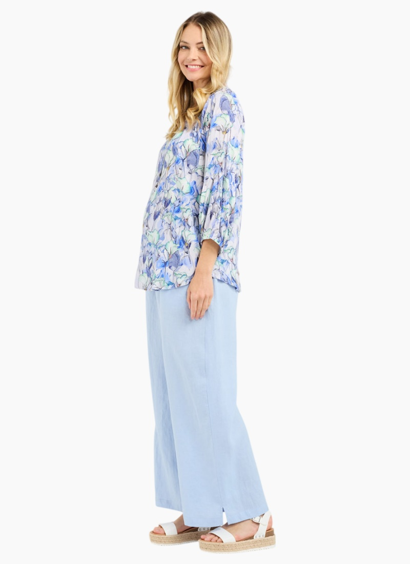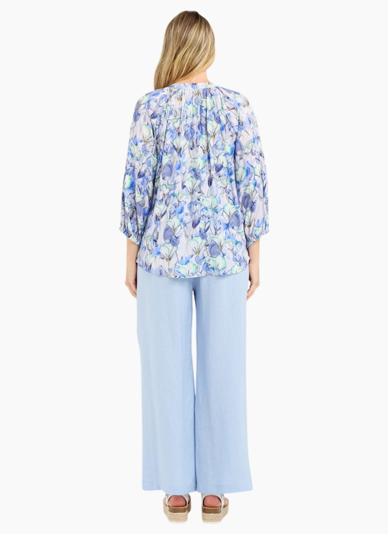 Introducing the Celine Top - Blue blooming from Blackstone. This airy floral blouse brings relaxed sophistication to your everyday wardrobe.