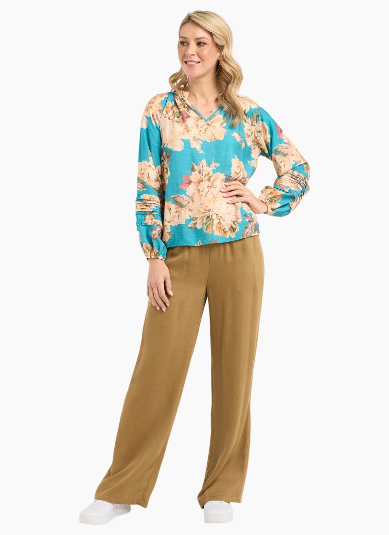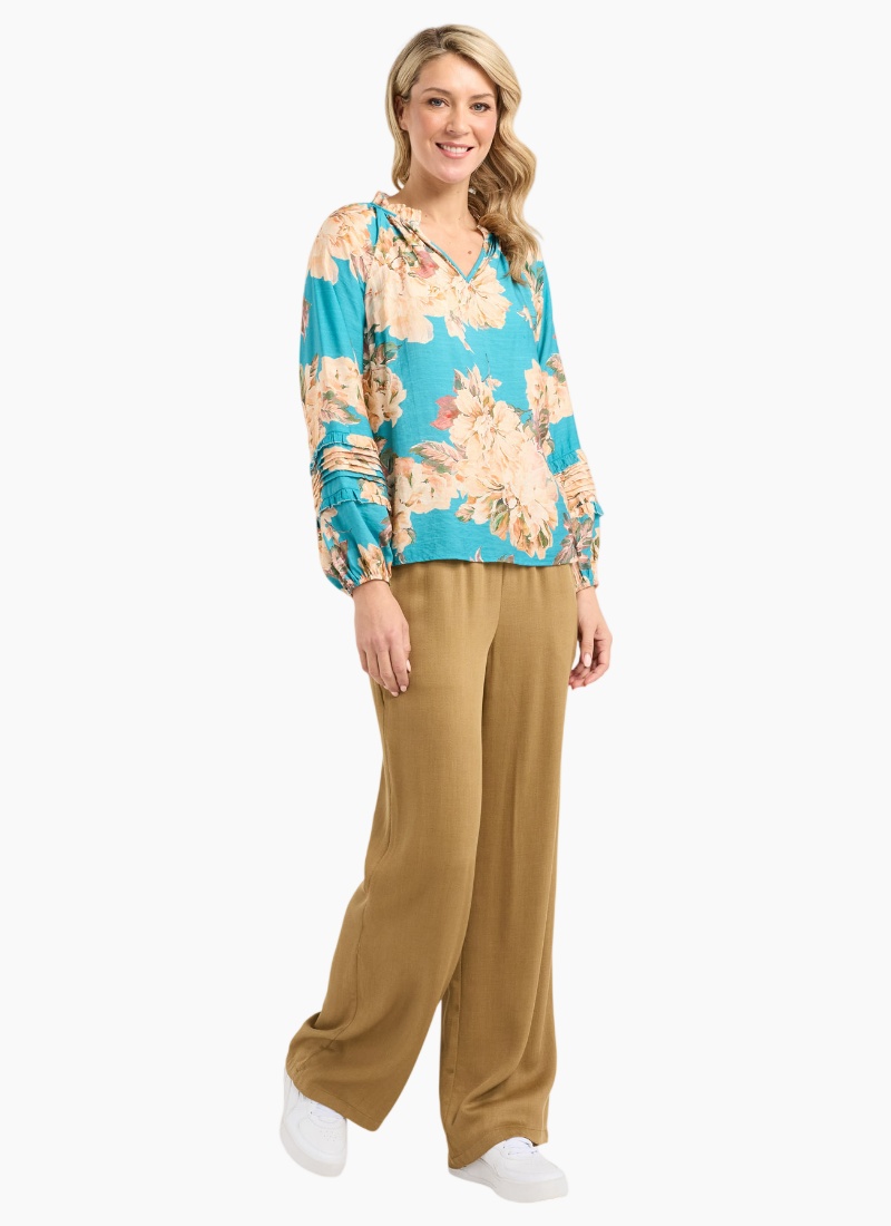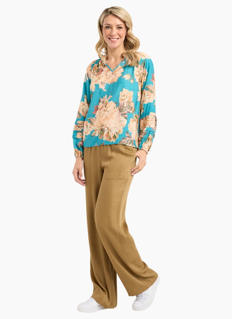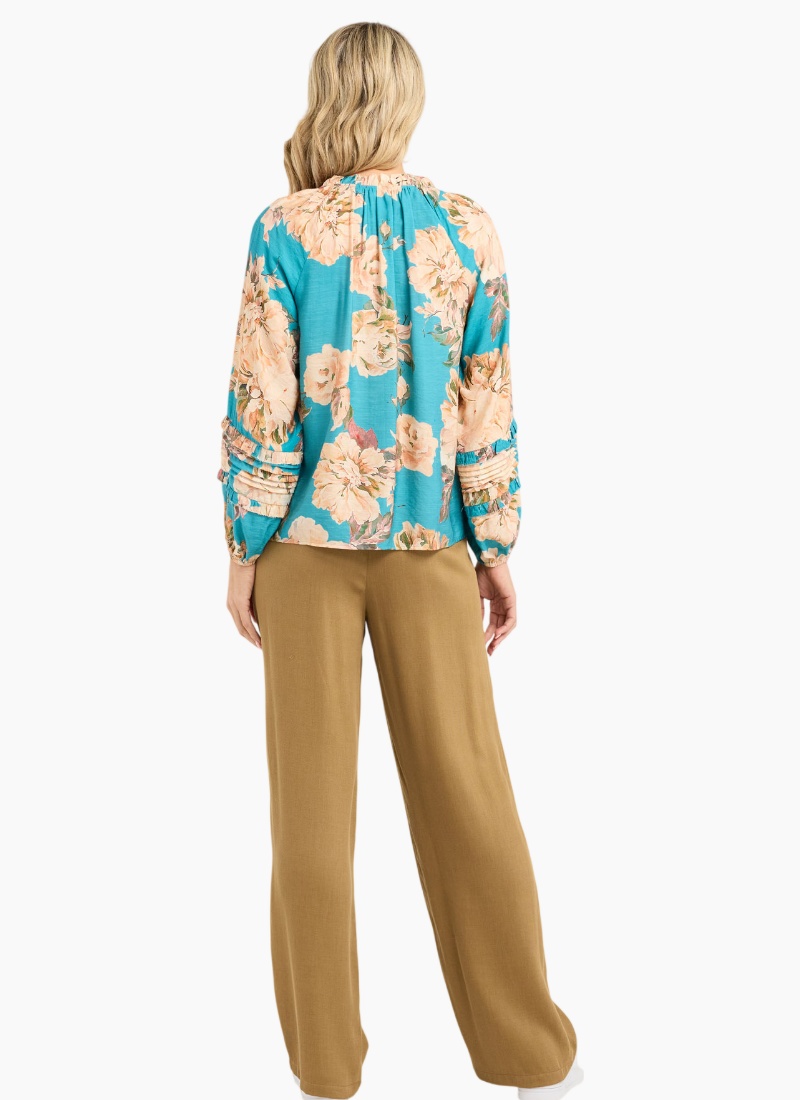 Introducing the Christine Frill Top from Blackstone. This relaxed shirts & blouses piece features a vibrant turquoise base scattered with soft cream florals for an instant style lift.