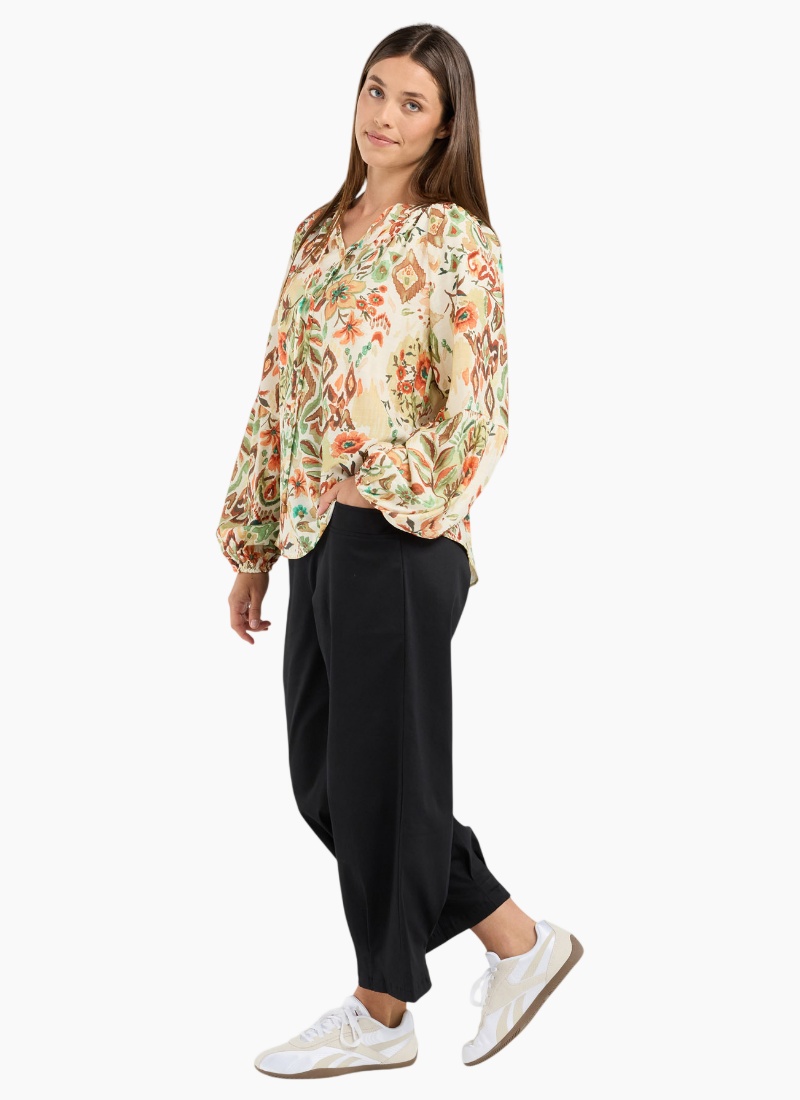 Introducing the Monica Gathered from Blackstone. This elegant Shirts & Blouses piece in cream combines a painterly floral print with soft, breathable viscose for everyday polish.
