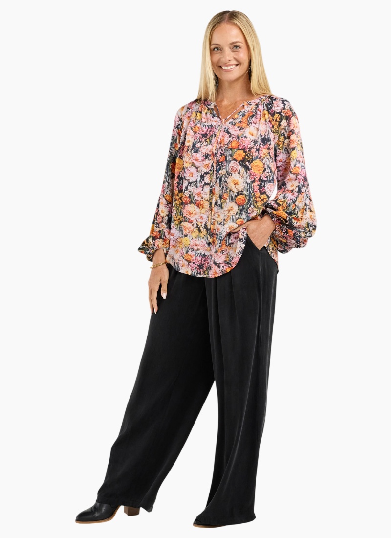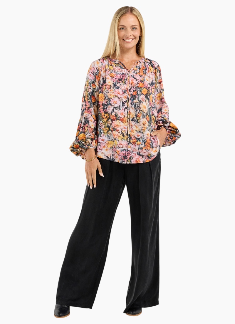 Phoebe Gathered Sleeve Top Crafted from 100% rayon for a silky smooth feel, the Phoebe Gathered Sleeve top is as comfortable as it is stylish. Designed to add a touch of elegance to any outfit its unique gathered sleeves create a soft feminine silhouette. Perfect for a casual brunch or a sophisticated evening out this versatile piece is sure to become a favourite in your wardrobe. Whether you pair it with jeans or a chic skirt the Phoebe Top is designed to make you feel fabulous wherever you go. V-neckline with ties Full length sleeves Low puff sleeve detail with elasticated cuffs