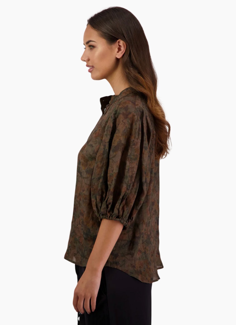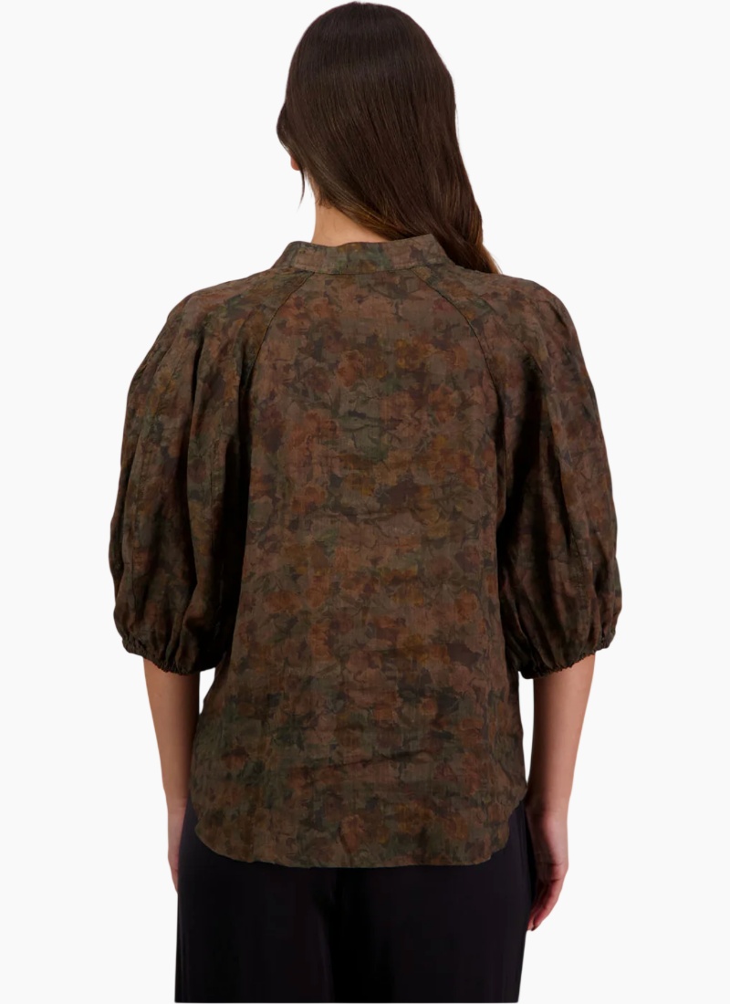 Introducing the Harlow Blouse Vintage Floral from Briarwood. This vintage-inspired blouse features a muted olive floral colourway and a soft viscose drape for effortless comfort and polish.