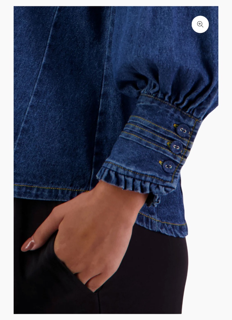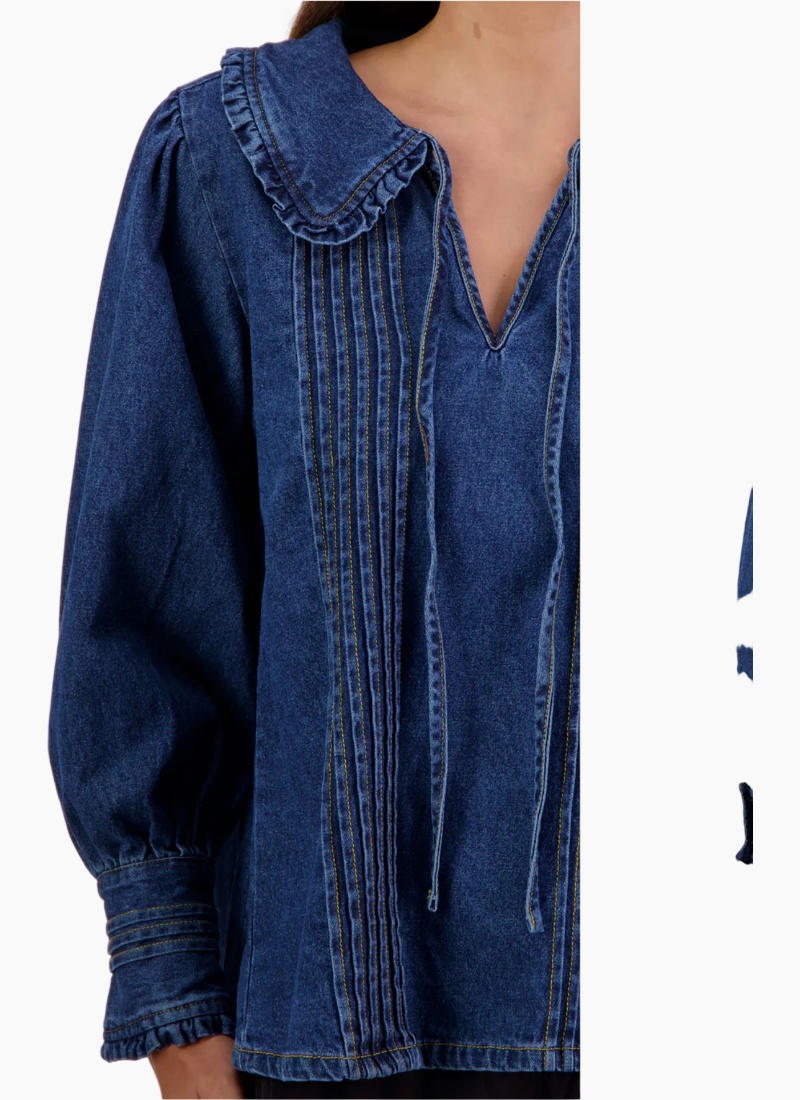 Introducing the Redmond Denim Top from Briarwood. A beautifully detailed denim blouse that pairs vintage-inspired charm with modern everyday ease.