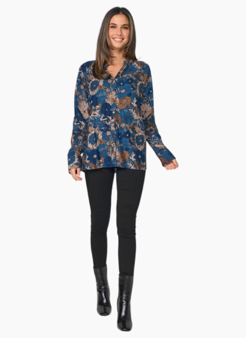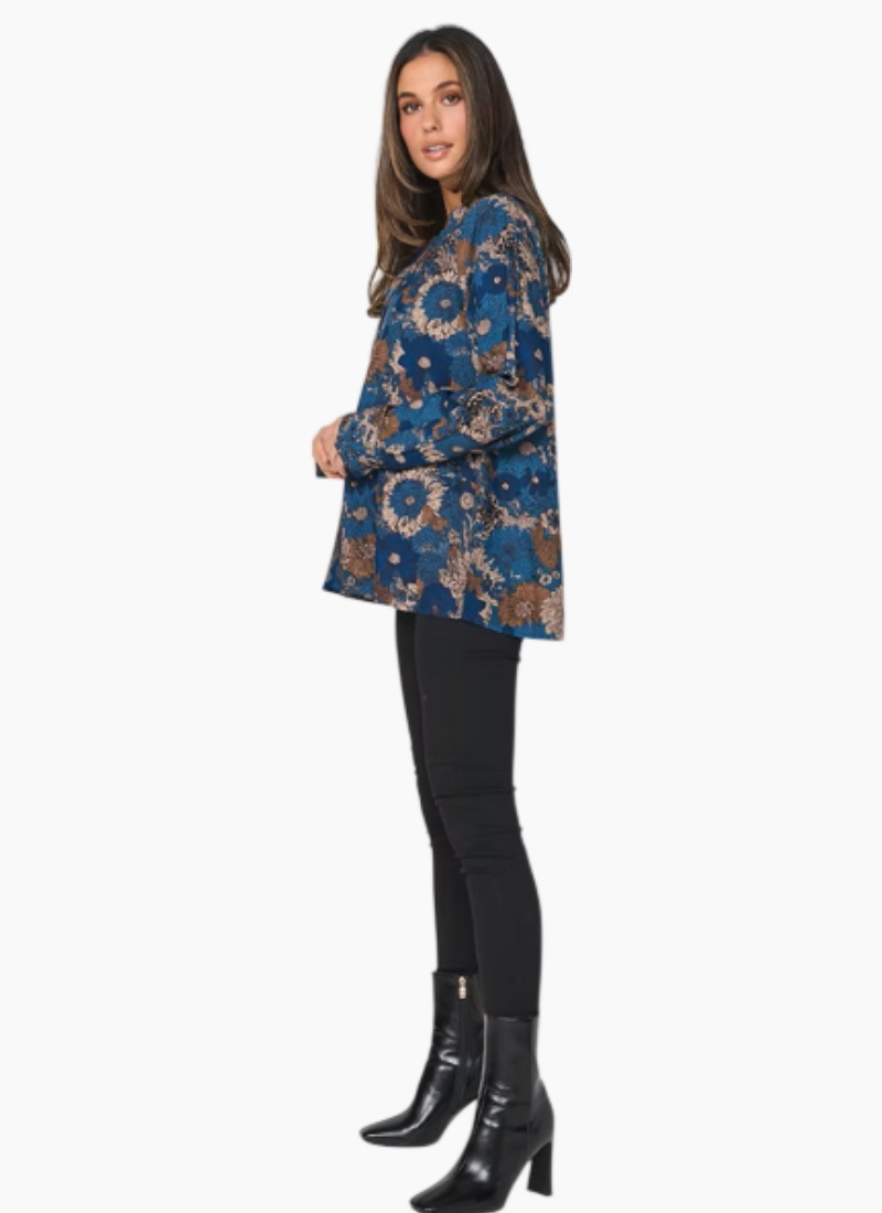 Introducing the Raglan Sleeve Shirt from CAJU. This relaxed floral blouse in a rich blue colour brings effortless elegance to everyday dressing.