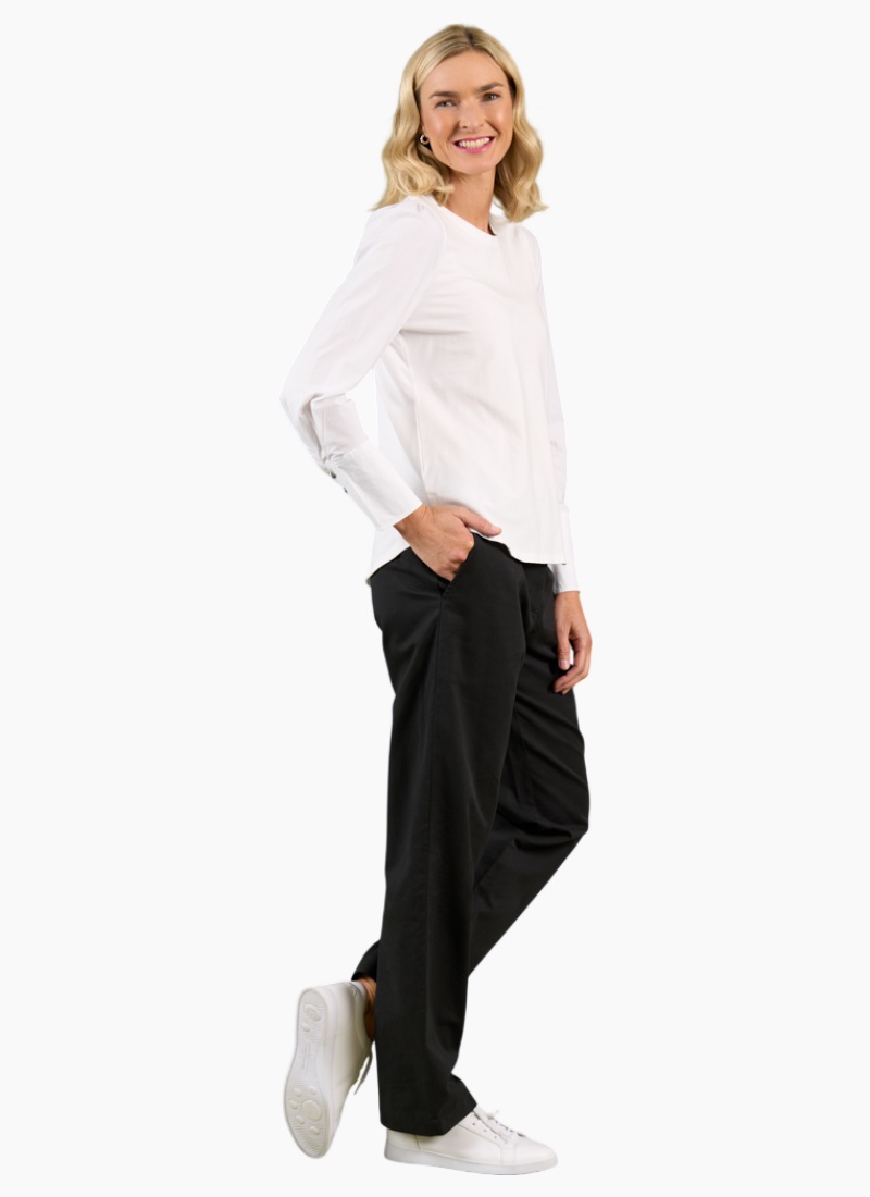 Introducing the Thornbury Top from Charlie Jane. A crisp white wardrobe essential that blends tailored detail with everyday ease.