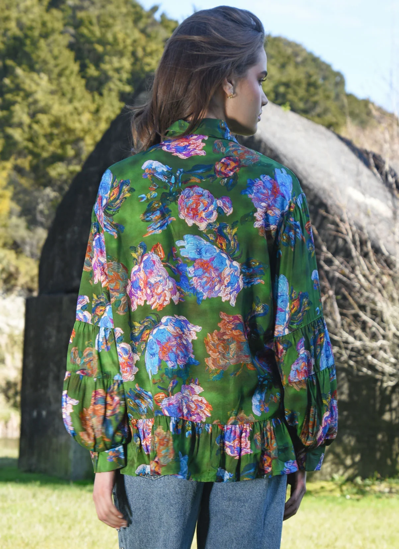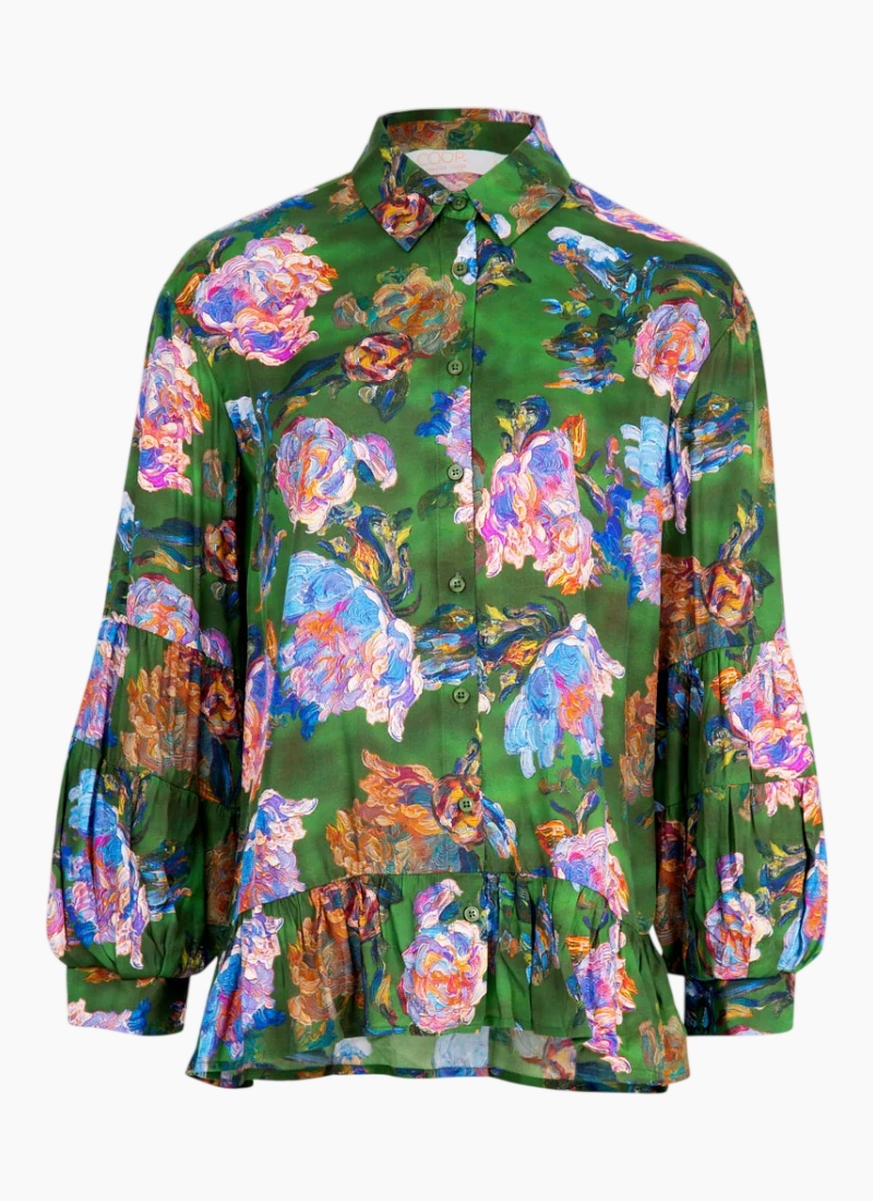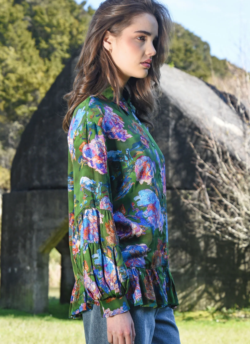 Introducing the Flounce on Blouse - Brush Strokes Green from COOP. This feminine blouse brings a painterly floral print to everyday dressing with an effortless, dressed-up feel.