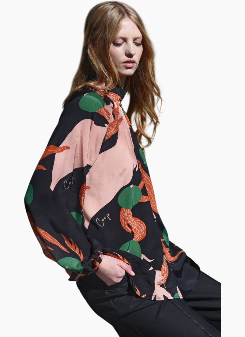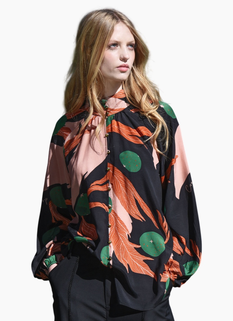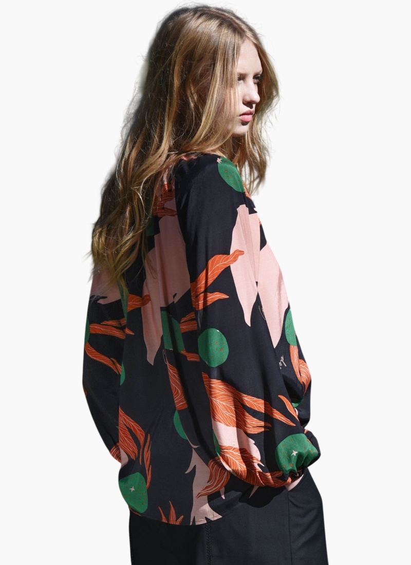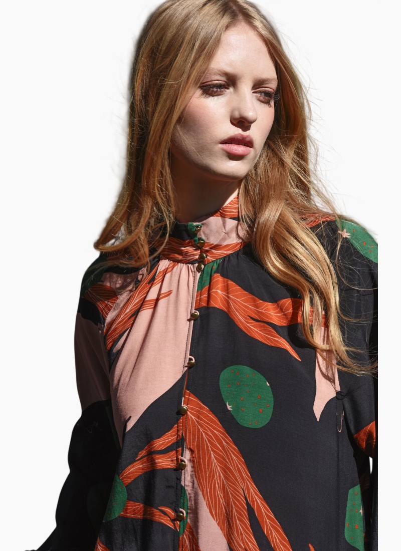 A bold abstract print energizes the ‘High & Mighty’ blouse in Berry Unexpected viscose blend. Featuring a stand collar and button-through front with delicate rouleau loop fastening, it’s finished with raglan inset blouson sleeves and elasticated cuffs for a modern, fashion-led silhouette. • Stand collar • Button through front with rouleau loop fastening • Raglan inset blouson sleeves • Elasticated cuffs • Print placement may differ