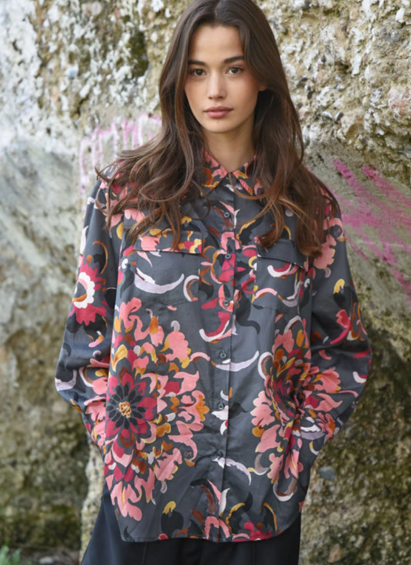 A bold abstract floral print brings playful elegance to the ‘Pocket Full of Chic’ shirt by COOP crafted in 'Medallionaire' cotton sateen. Its oversized silhouette drapes effortlessly, while a button-through front, flap-patch pockets, and fixed cuffs with button fastening add thoughtful structure to this fashion-led wardrobe essential.• Oversized fit • Button through front • Front flap-patch pockets • Fixed cuff with button fastening • Print placement may differ 100% Cotton
