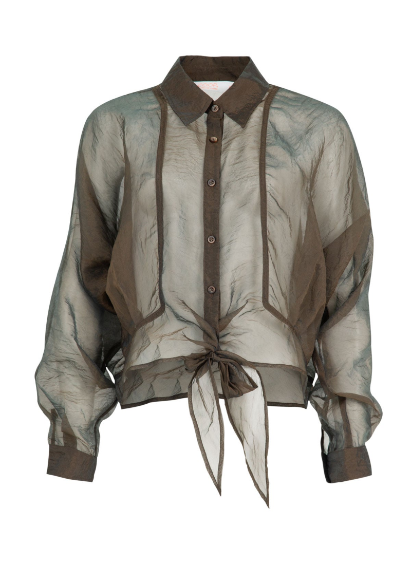 Introducing the TIED & TESTED Blouse - Khaki from COOP. This lightweight, khaki blouse features a delicate sheen and a tied hem that elevates everyday dressing.