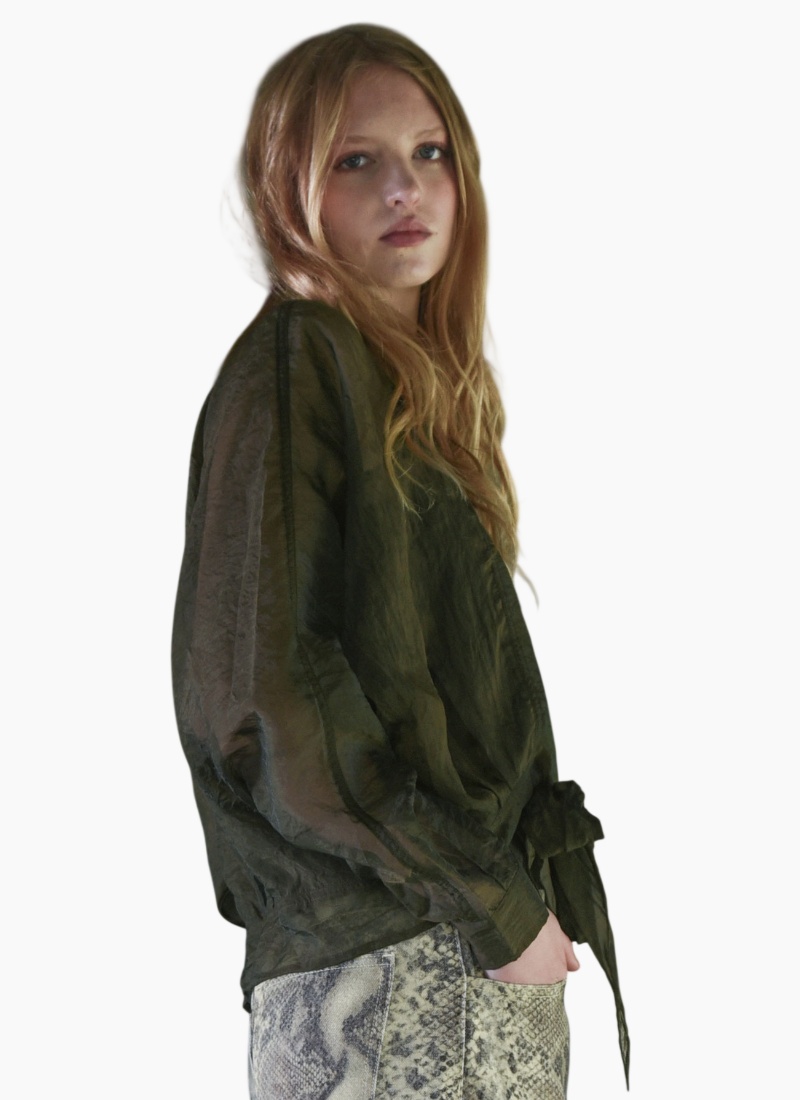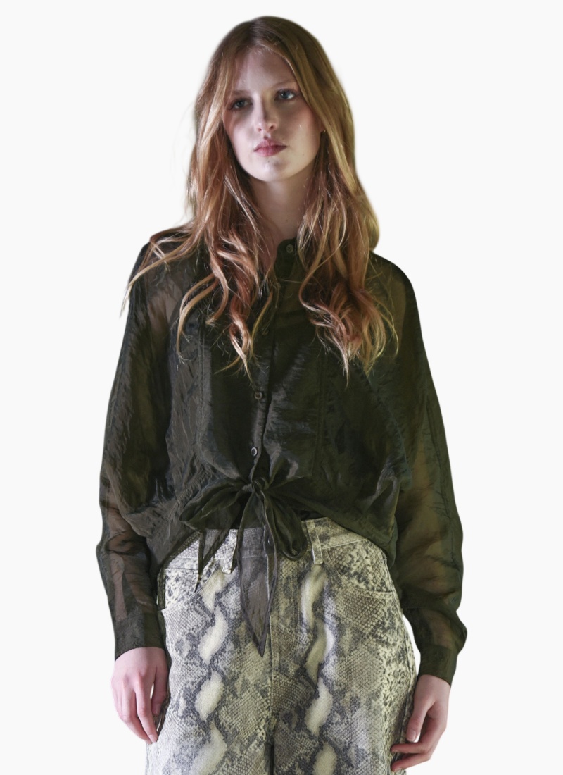 Impossible to ignore, the ‘Tied & Tested’ blouse is your secret weapon for effortless polish with a playful twist. Designed in the ‘Organza Bonanza’ iridescent organza, it features a classic button up front, batwing sleeves, and sheer finish, all about balancing softness with structure. A waist tie cinches into a dramatic bow bringing the right amount of statement to this tailored silhouette. Dress it up, layer it down or let it steal the spotlight on its own. • Tie front • Button through • Batwing sleeve • Fixed cuff with button fastening