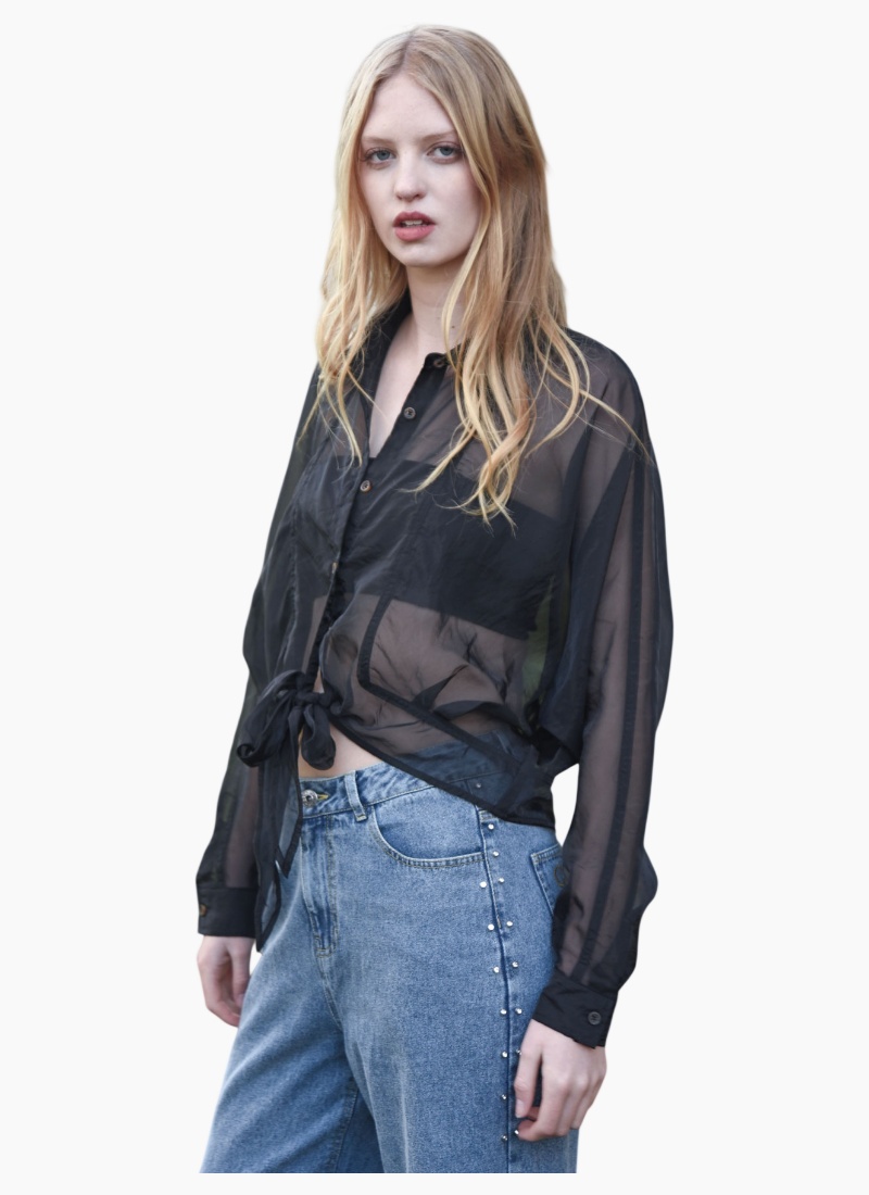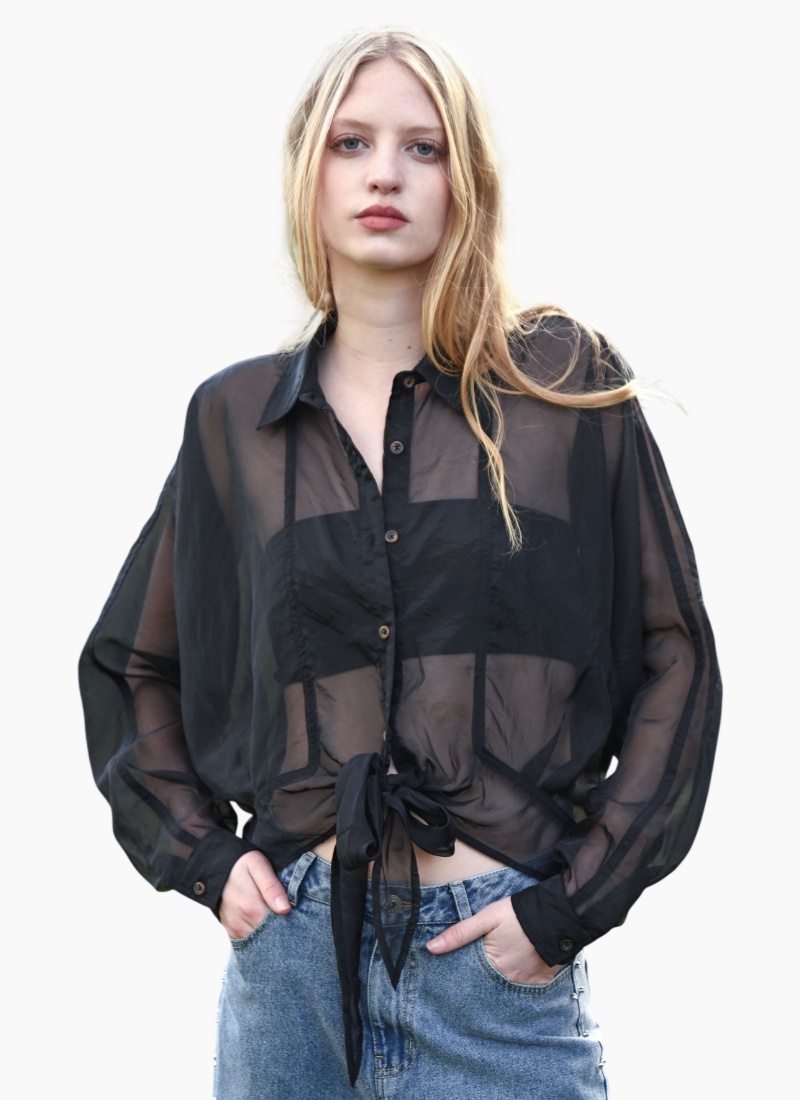 Impossible to ignore, the ‘Tied & Tested’ blouse is your secret weapon for effortless polish with a playful twist. Designed in the ‘Organza Bonanza’ iridescent organza, it features a classic button up front, batwing sleeves, and sheer finish, all about balancing softness with structure. A waist tie cinches into a dramatic bow bringing the right amount of statement to this tailored silhouette. Dress it up, layer it down or let it steal the spotlight on its own. • Tie front • Button through • Batwing sleeve • Fixed cuff with button fastening