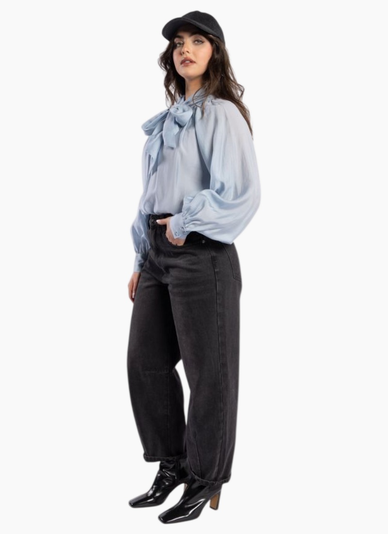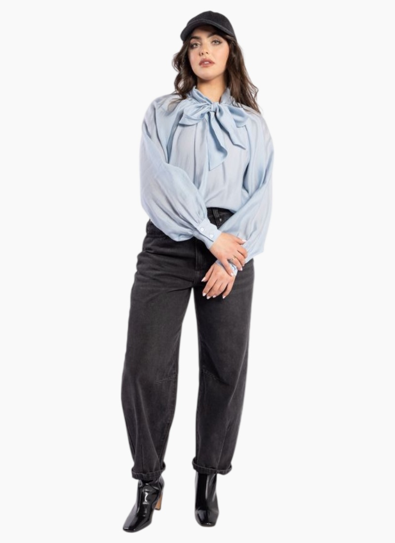 - Versatile powder blue colour pairs beautifully with denim or tailored trousers for day-to-night wear