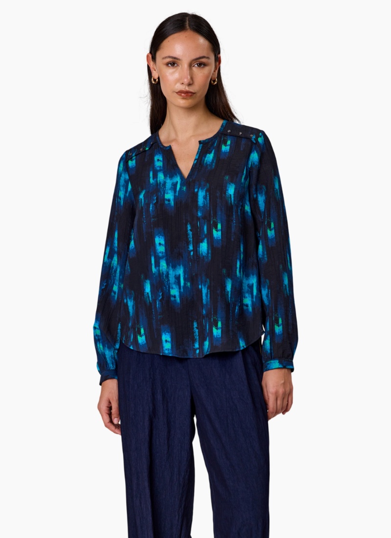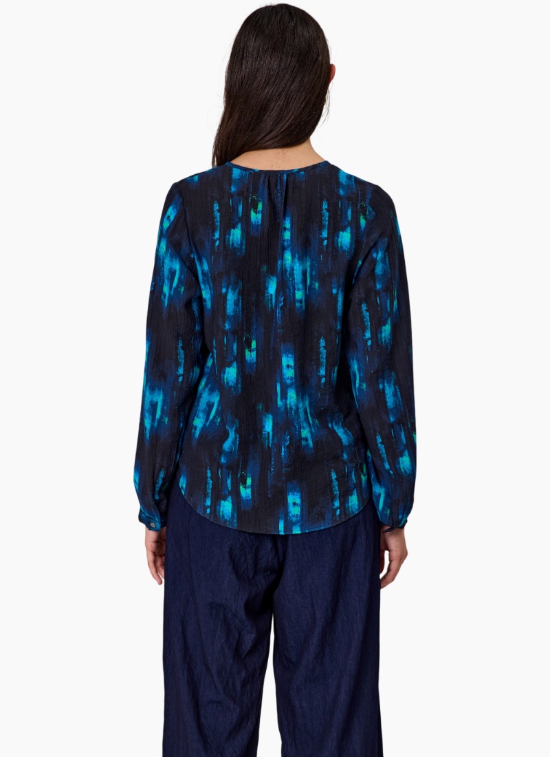 - Painterly navy and teal colourway adds contemporary interest to a classic shirt silhouette