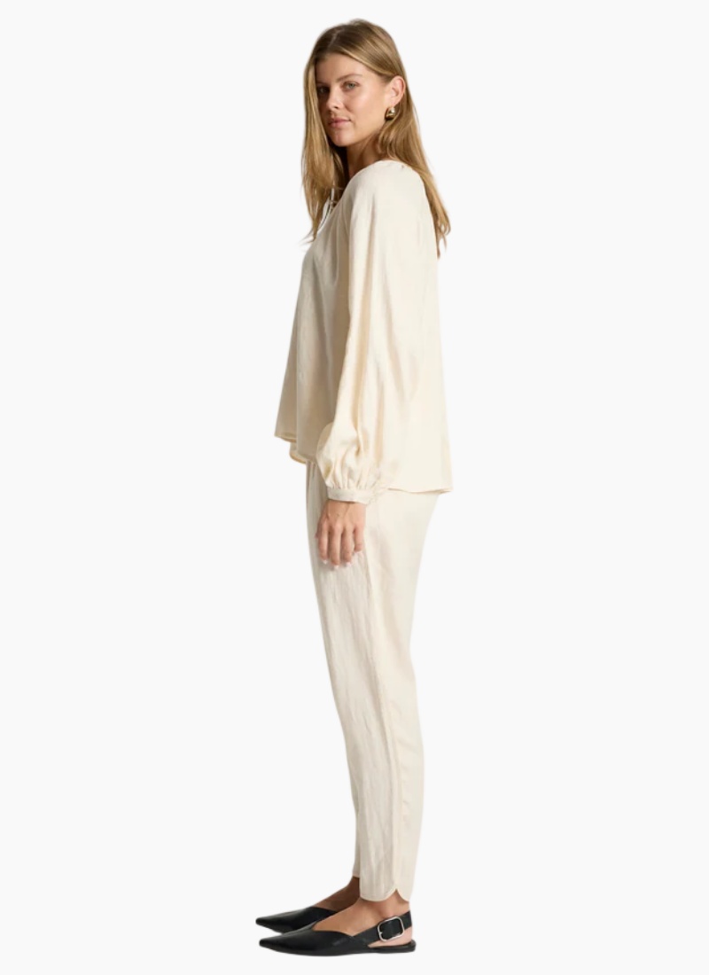 Introducing the Bajau Blouse from Eb + Ive. This airy cream linen top brings effortless elegance to your Tops collection.