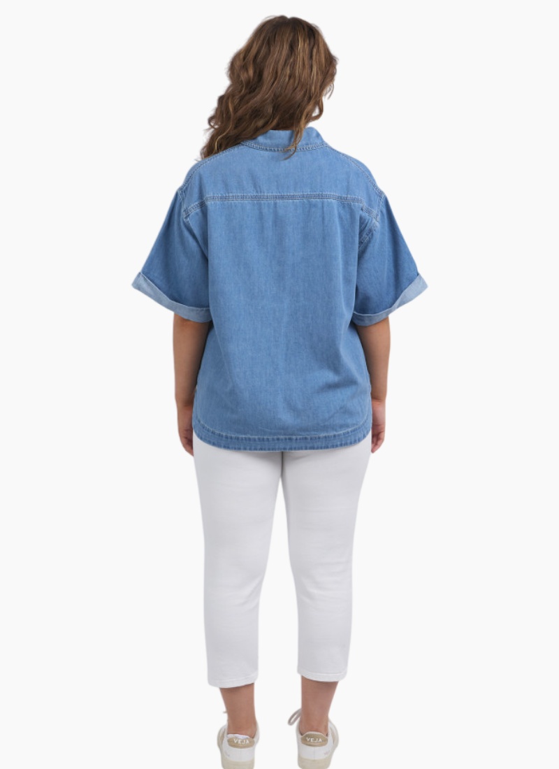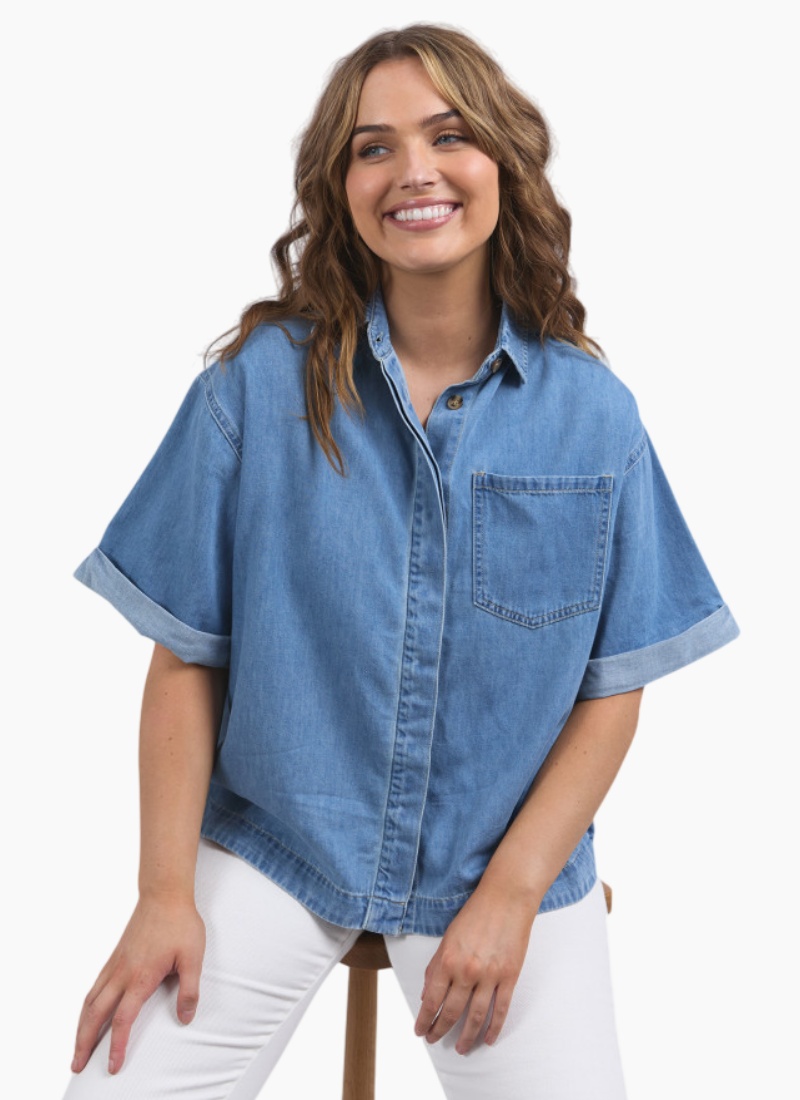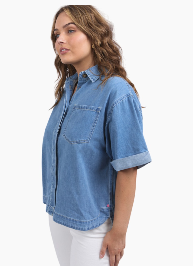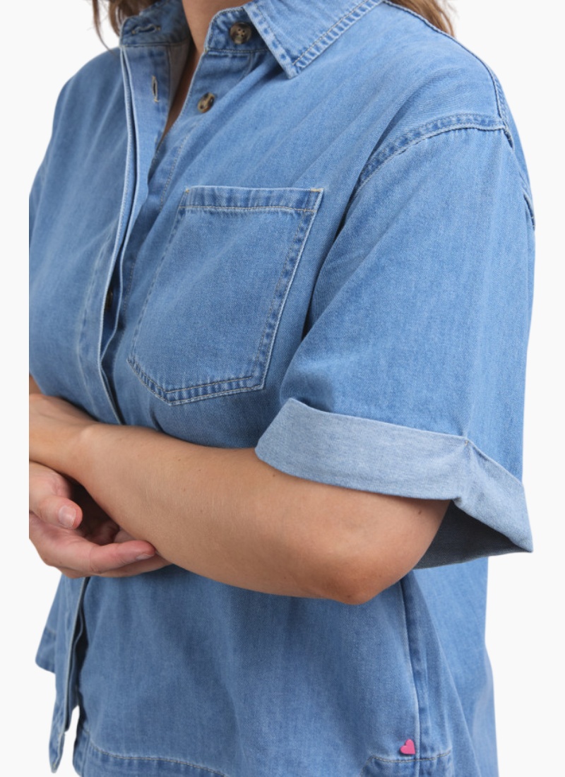 From workdays to weekends, the annika ss denim shirt delivers boxy fit, turn up cuff, and concealed buttons on placket. Style it your way for an effortless look that works for any day of the week.Boxy fit Turn up cuff Concealed buttons on placket