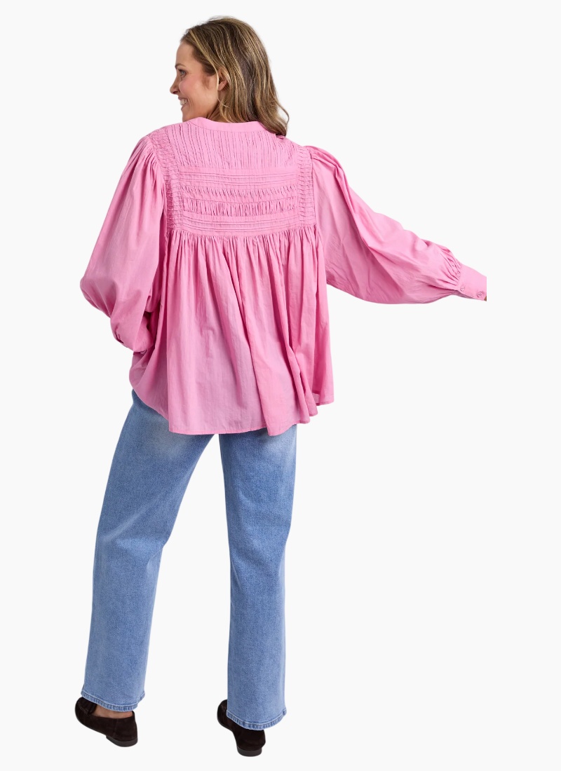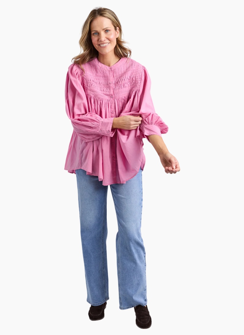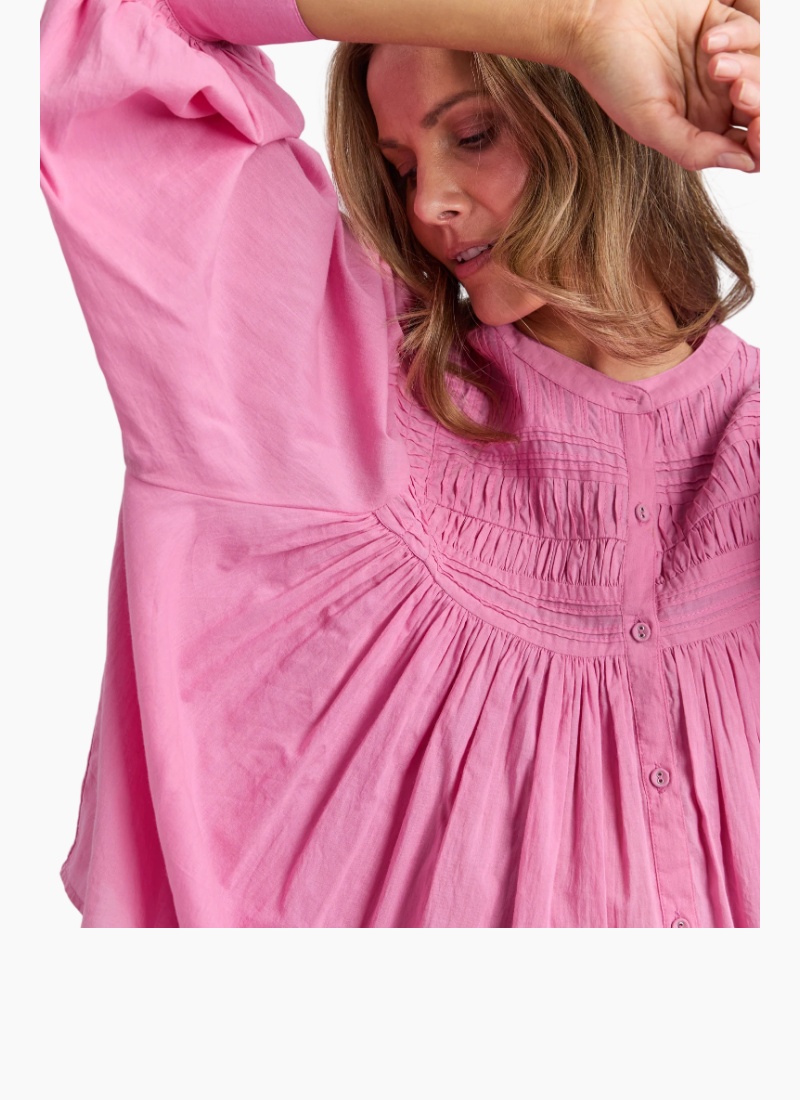 Float through your day in this stunning ultra light cotton voile shirt. Featuring pretty pintuck details on the front placket and a full button front, this oversized/relaxed fitting shirt is perfect for wearing atop your favourite bottoms. Pin tuck details Full button closure Oversized fit 100% cotton voile