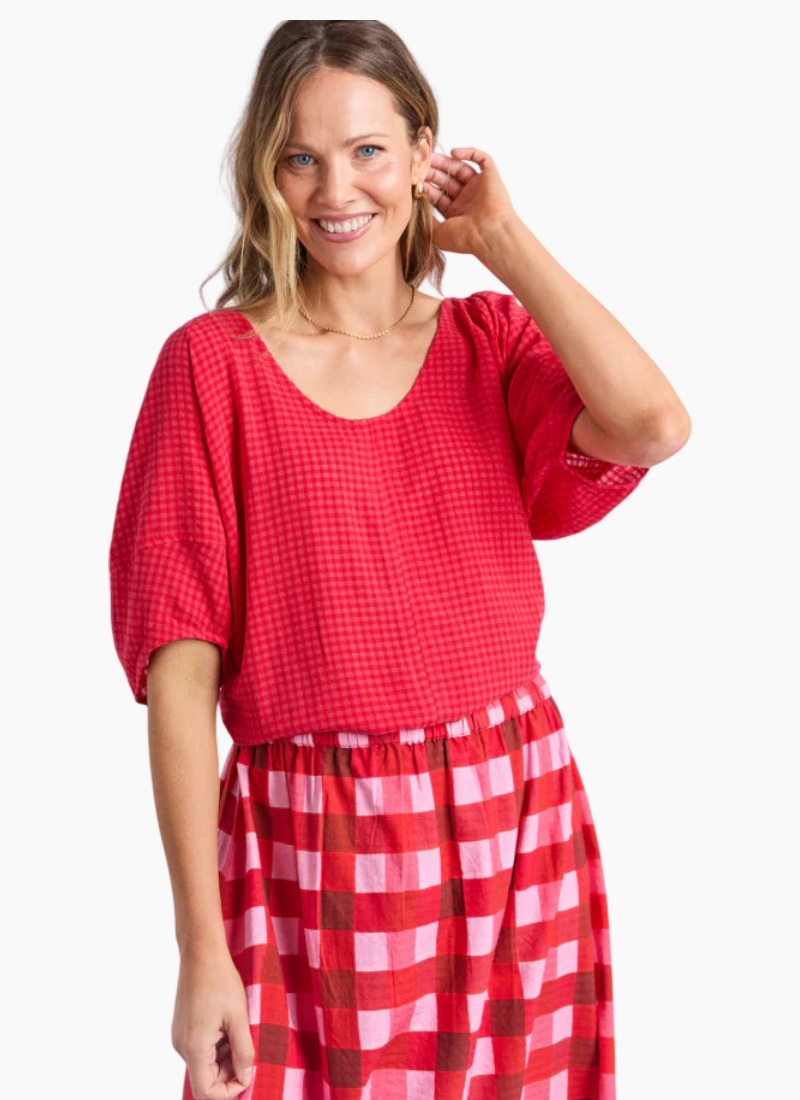 Introducing the Grove Top from Elm. This relaxed red blouse is an easy, stylish staple for everyday dressing.