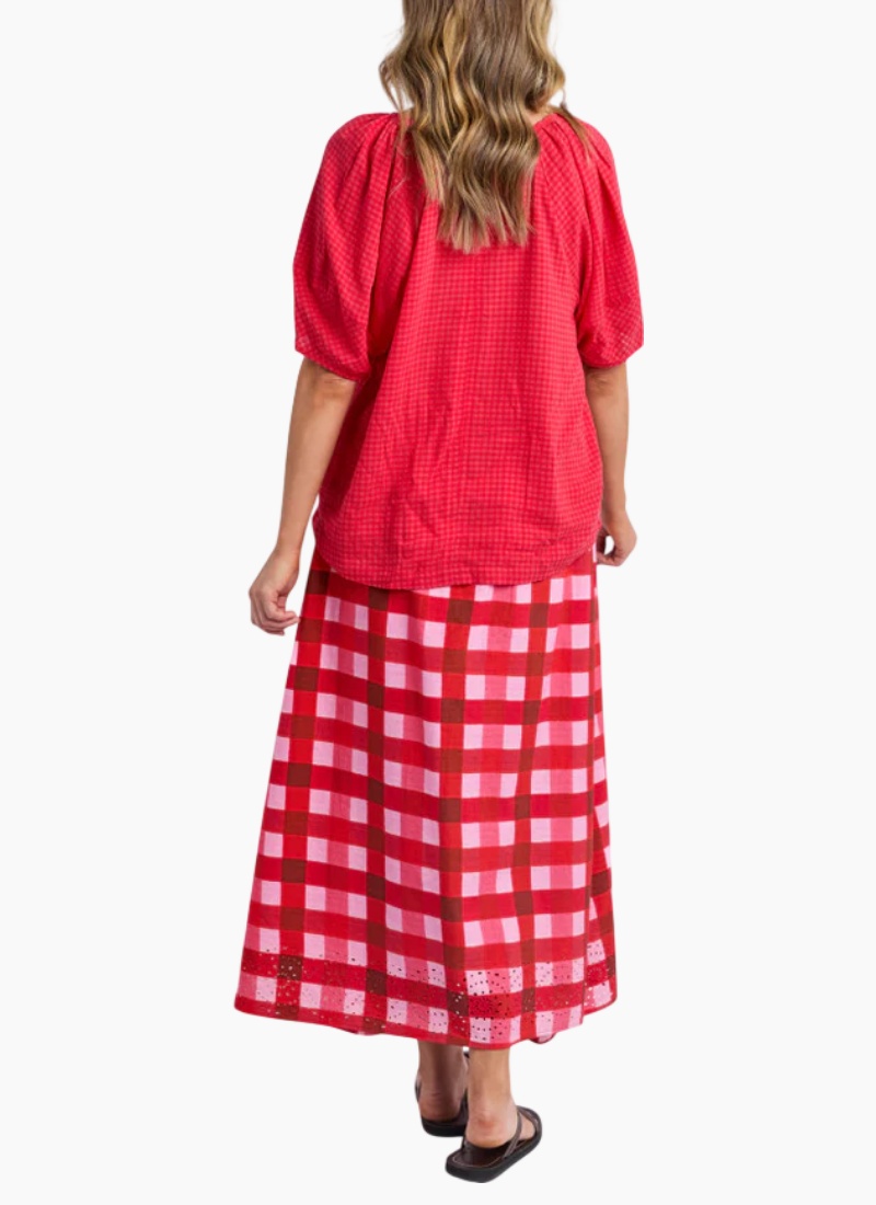- Rendered in a small gingham check in a vibrant red colour, it brings a playful yet refined note to your wardrobe