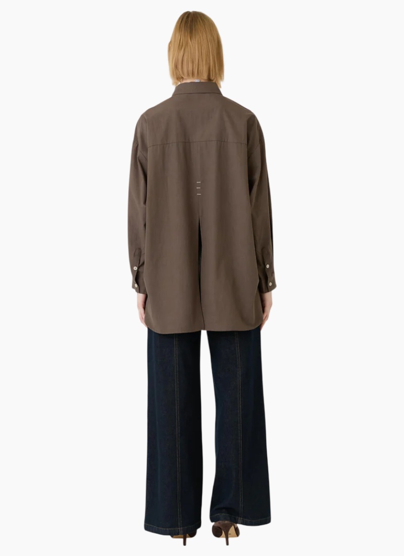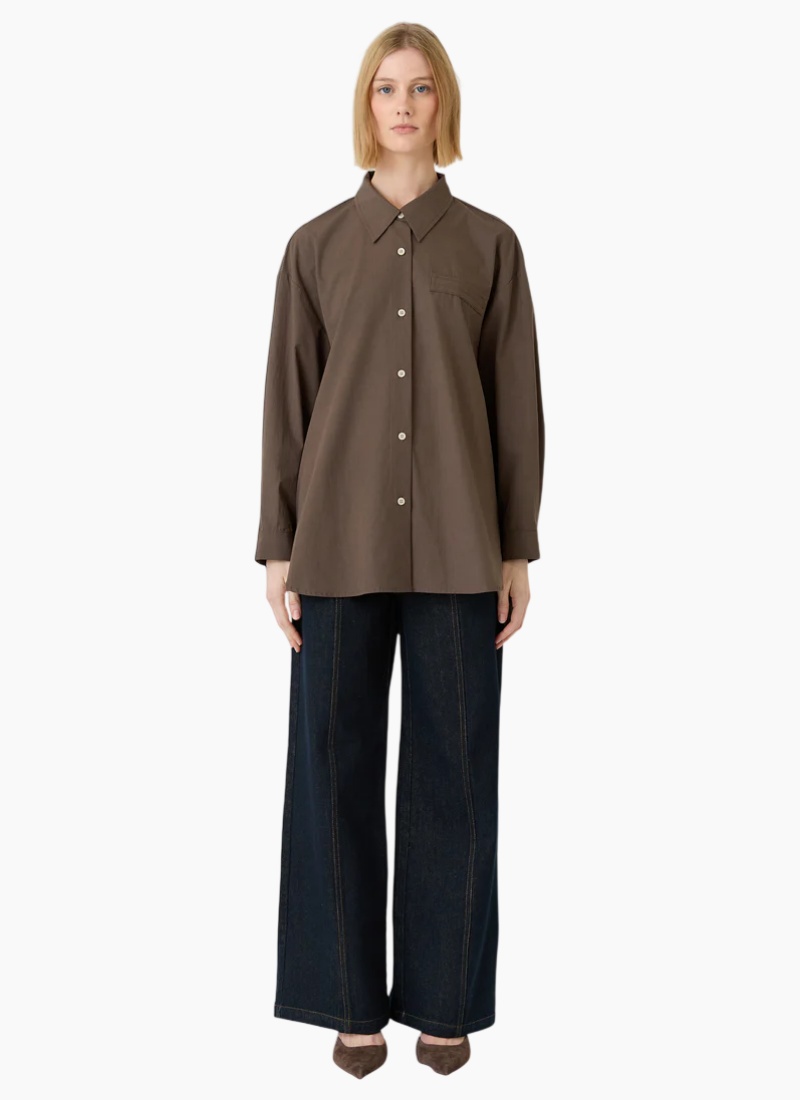 Introducing the Mayfair Shirt from Esmaee. A timeless addition to your Shirts & Blouses edit, finished in a rich brown hue and cut for a relaxed, modern silhouette.