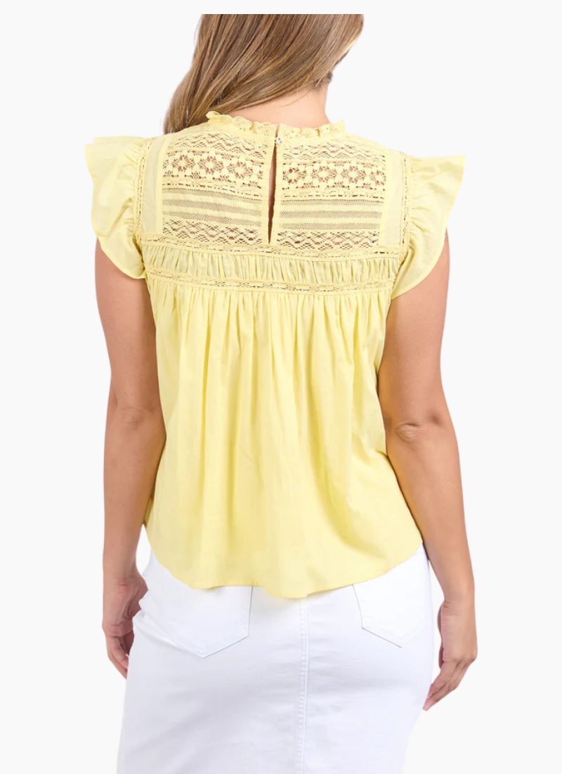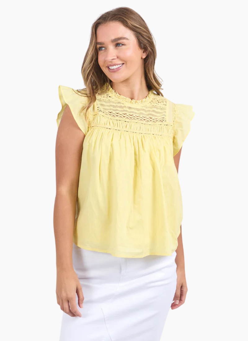 Introducing the Adelyn Top Lemon from Foxwood. This breezy, feminine blouse brings a sunny, vintage-inspired lift to your wardrobe.