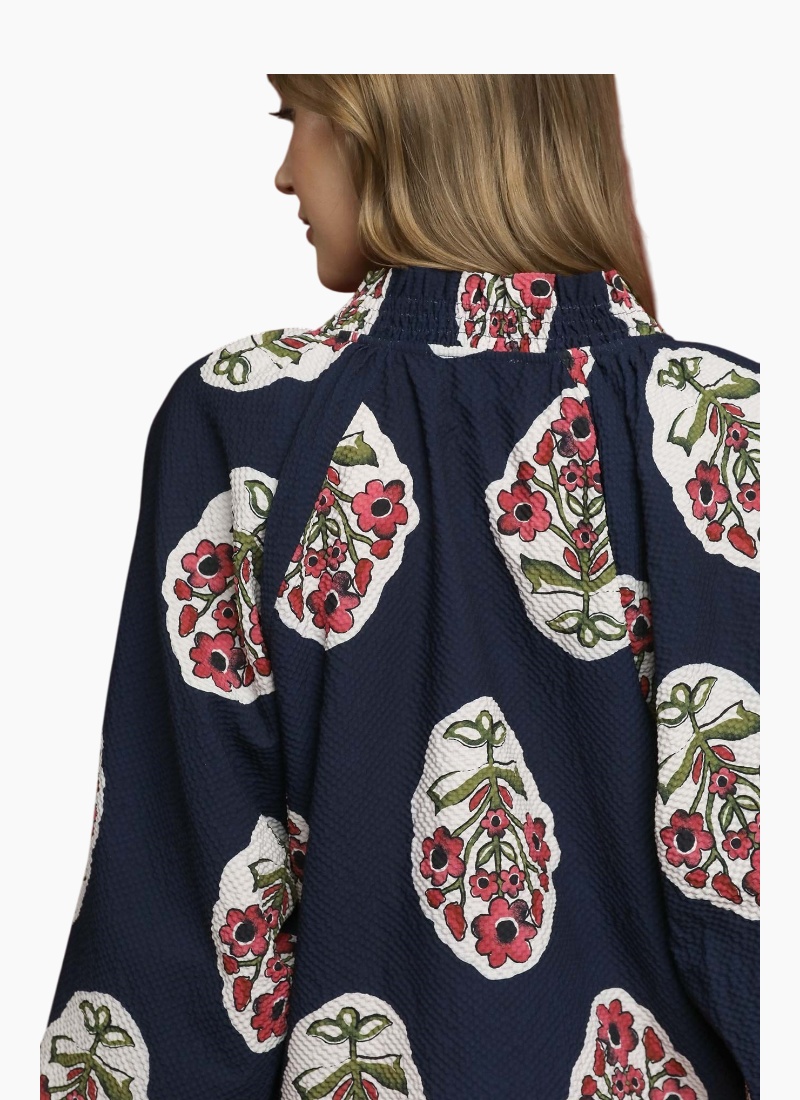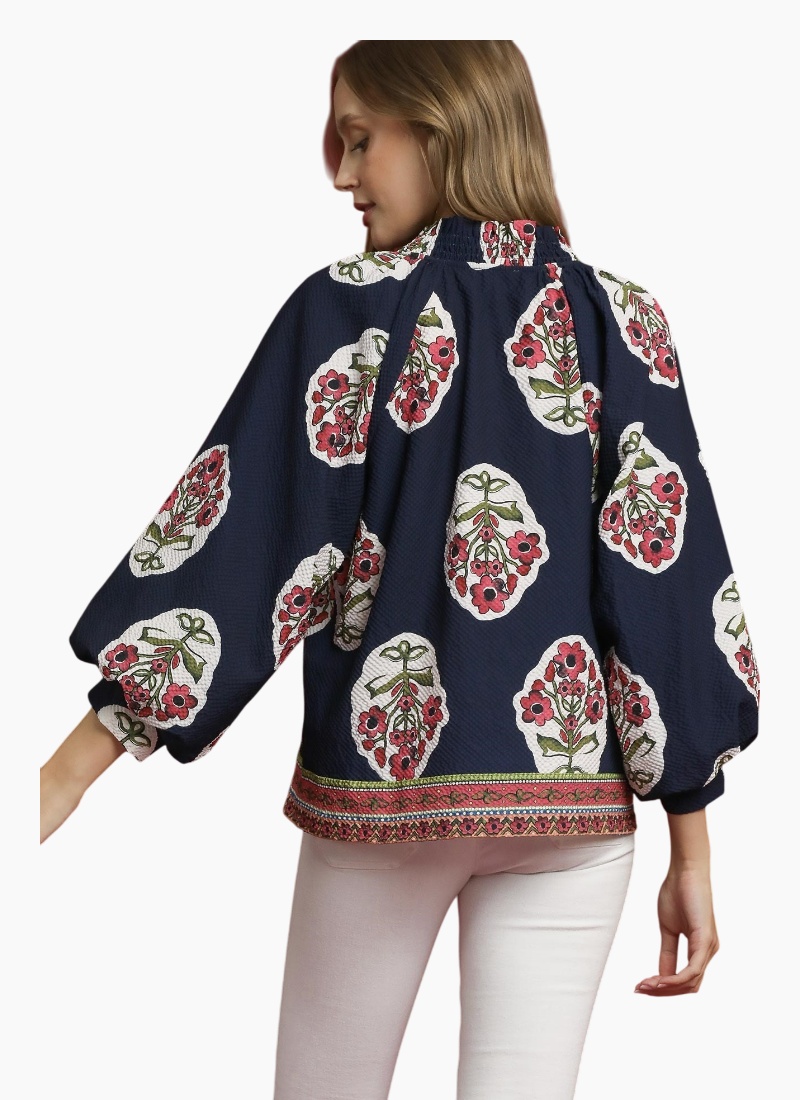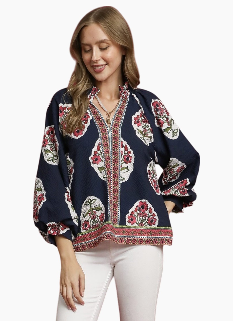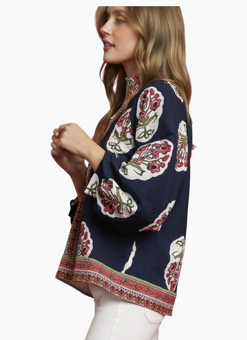 Split V-neck print shirt with contrast border print