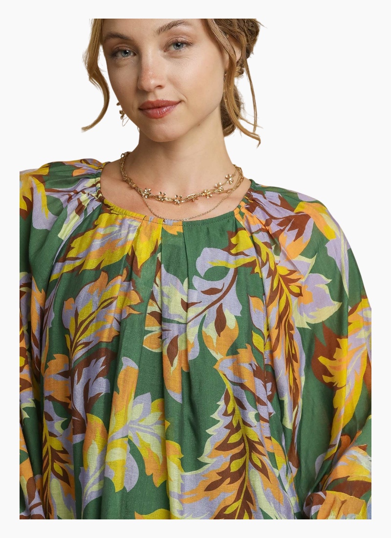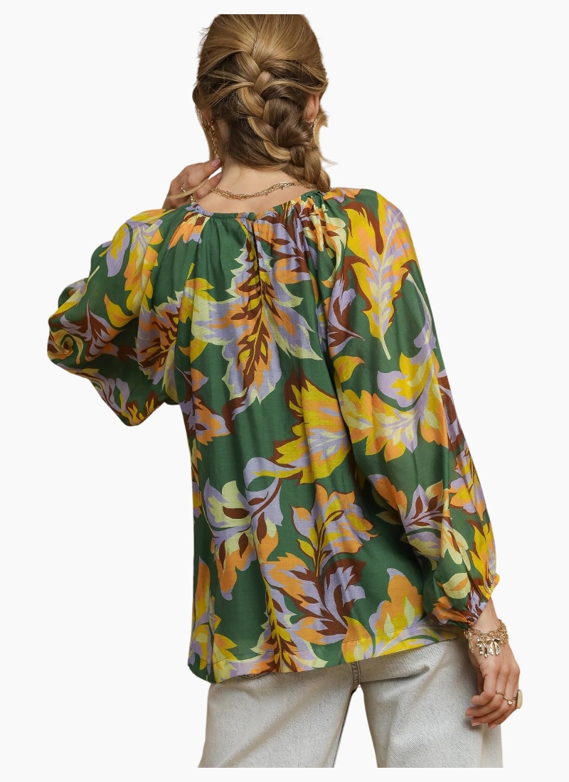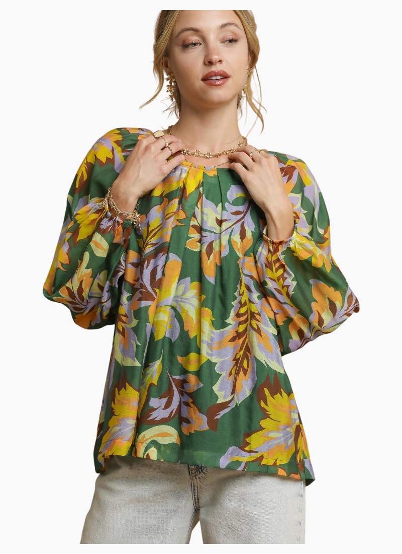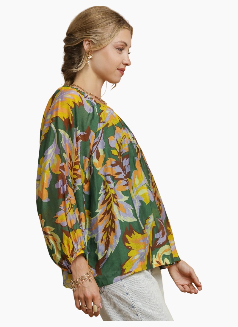 Abstract Print Balloon Sleeve Blouse