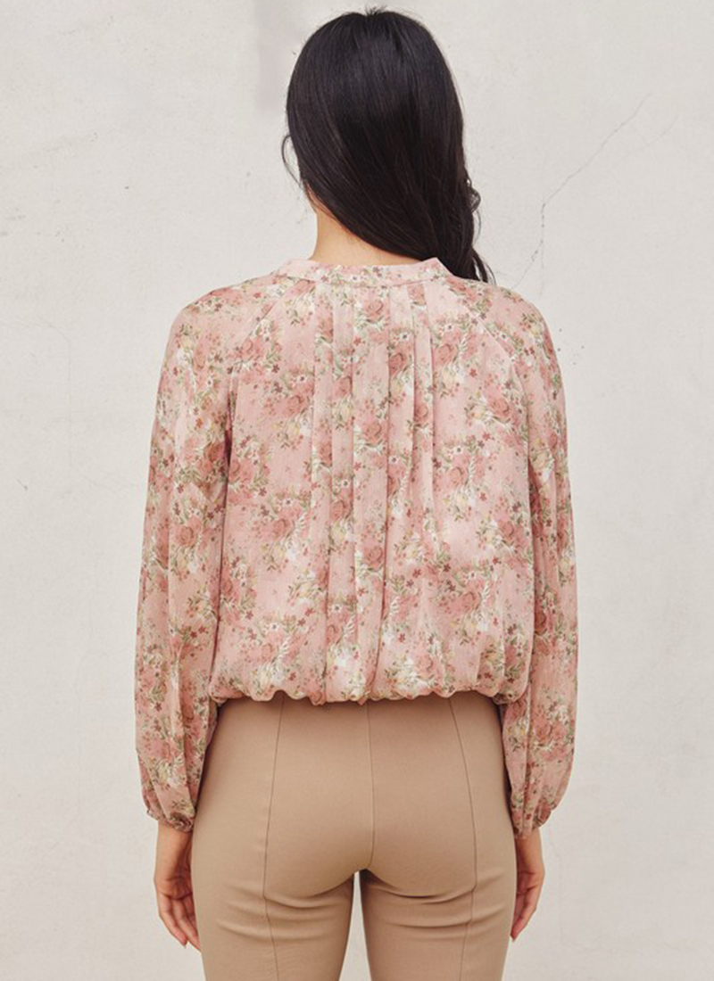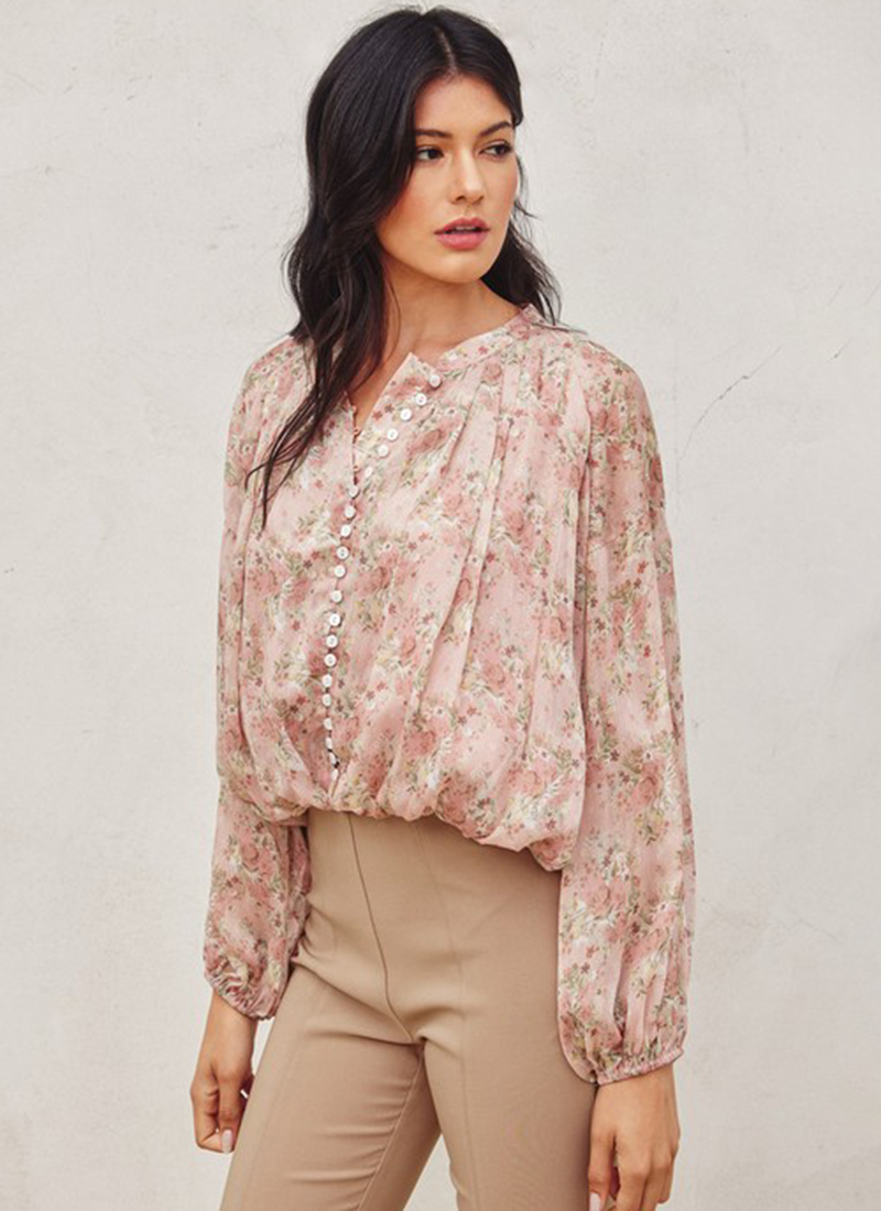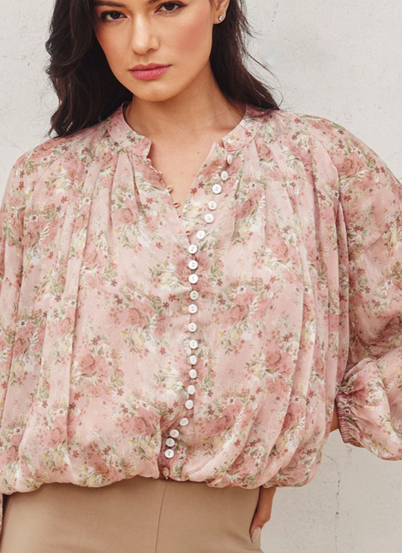 Floral print top with shell button detail