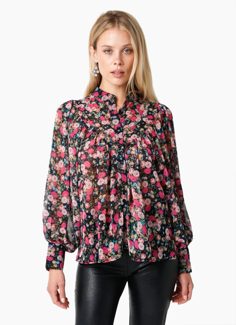 Pleat detail to the front & back lend graceful movement to this blousy top designed in an enchanting floral print.