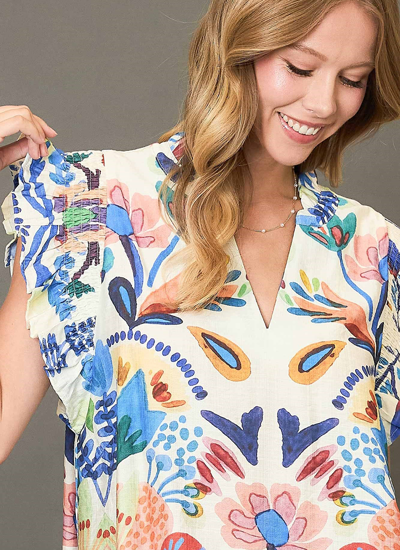 Sylvie Flutter Sleeve Top Blue