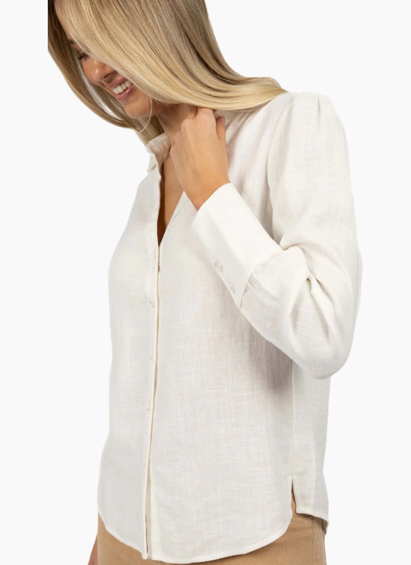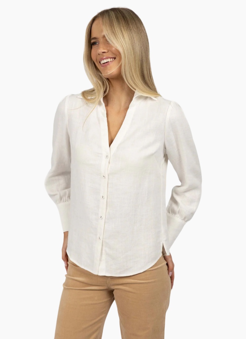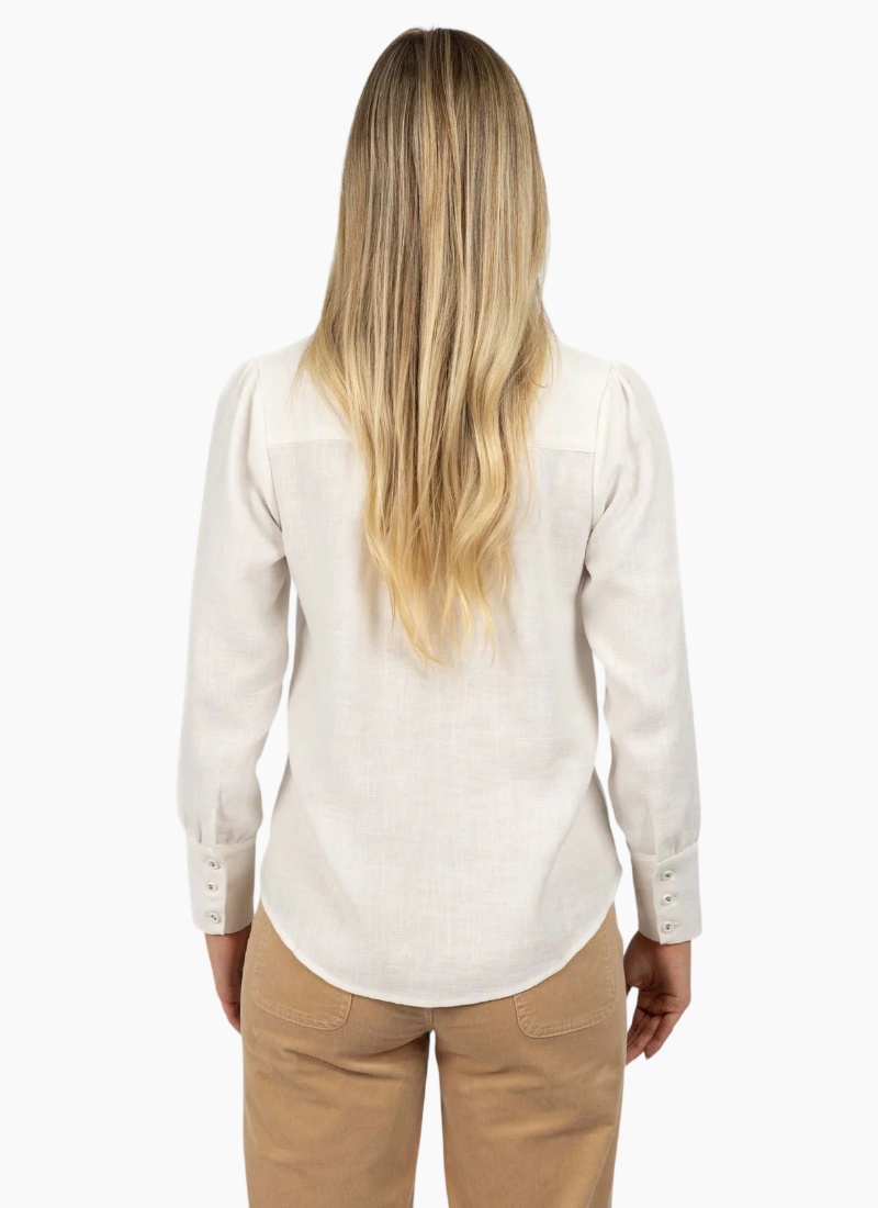A feminine collared shirt crafted from breathable natural fibres.