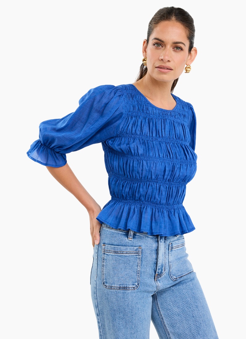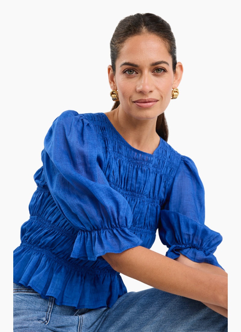 Bring effortless charm to your wardrobe with this beautifully shirred top from Ivy + Jack. Crafted from 100% cotton, it feels soft against the skin while the natural fibre keeps you cool and comfortable all day. The shirred bodice and gentle frill sleeves create a flattering silhouette that moves gracefully from casual catch-ups to elegant dinners.