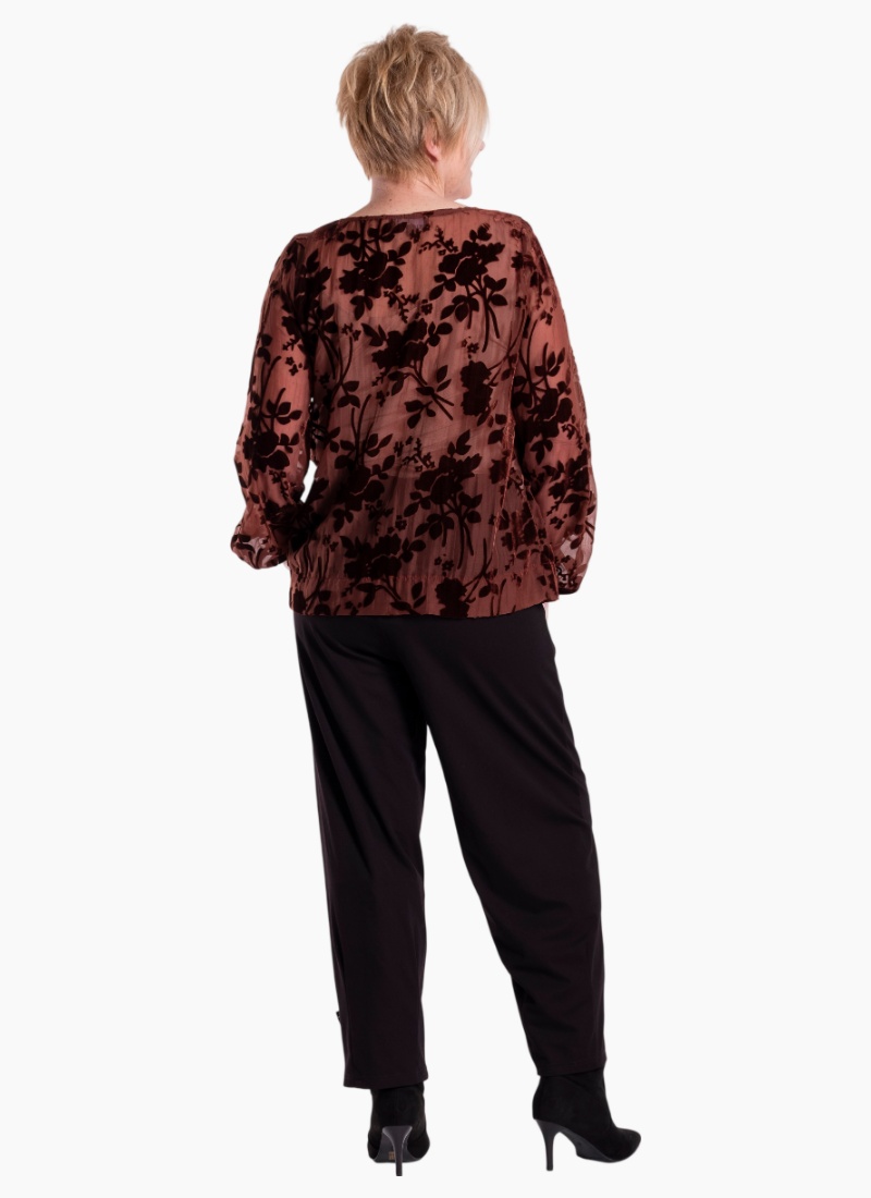 - A refined Shirts & Blouses piece in Burnt Coffee, crafted with devoré velvet on a lightweight chiffon base