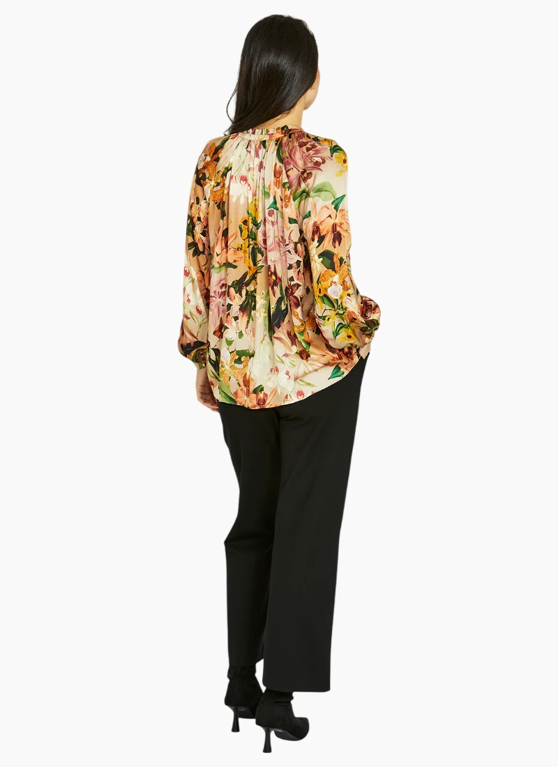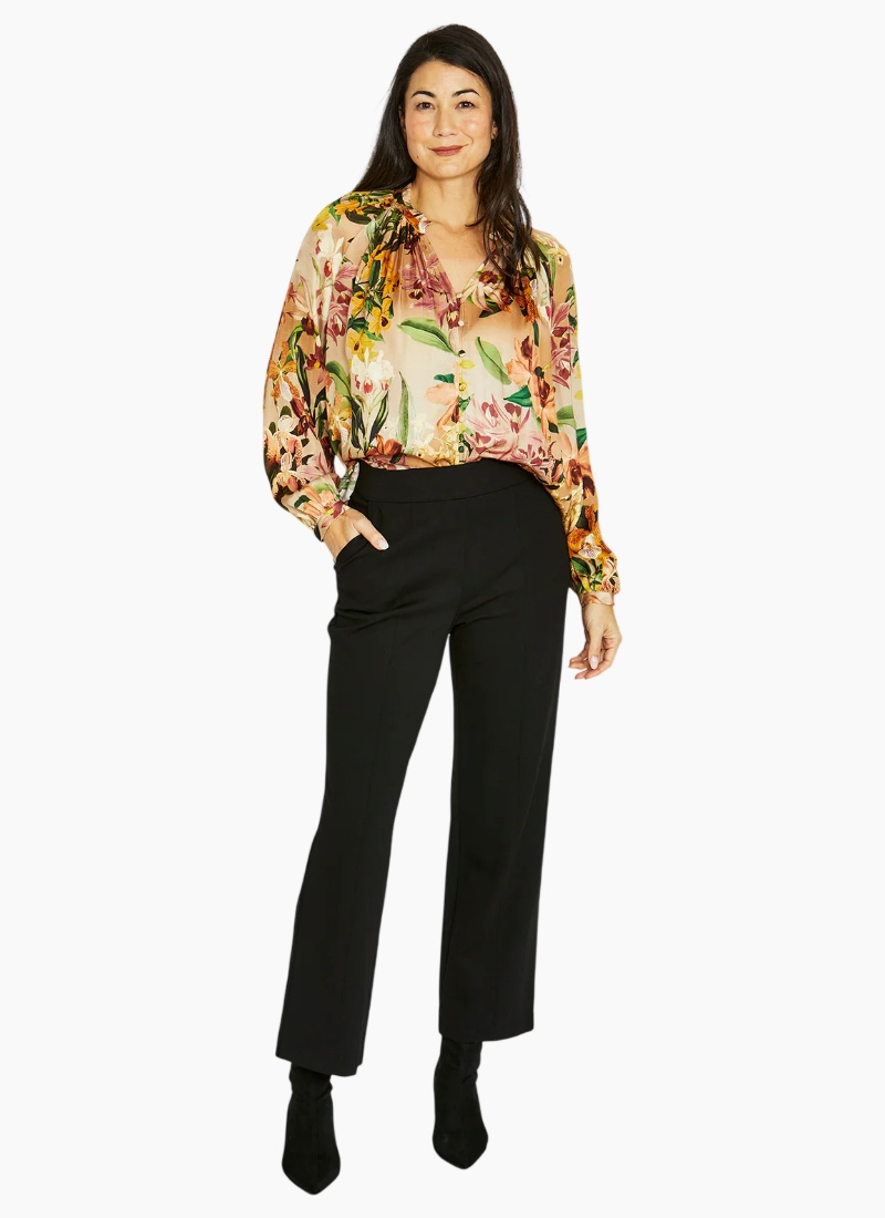 Introducing the Spiced Orchid Top from Jump. This elegant blouse brings botanical warmth and effortless polish to your wardrobe.