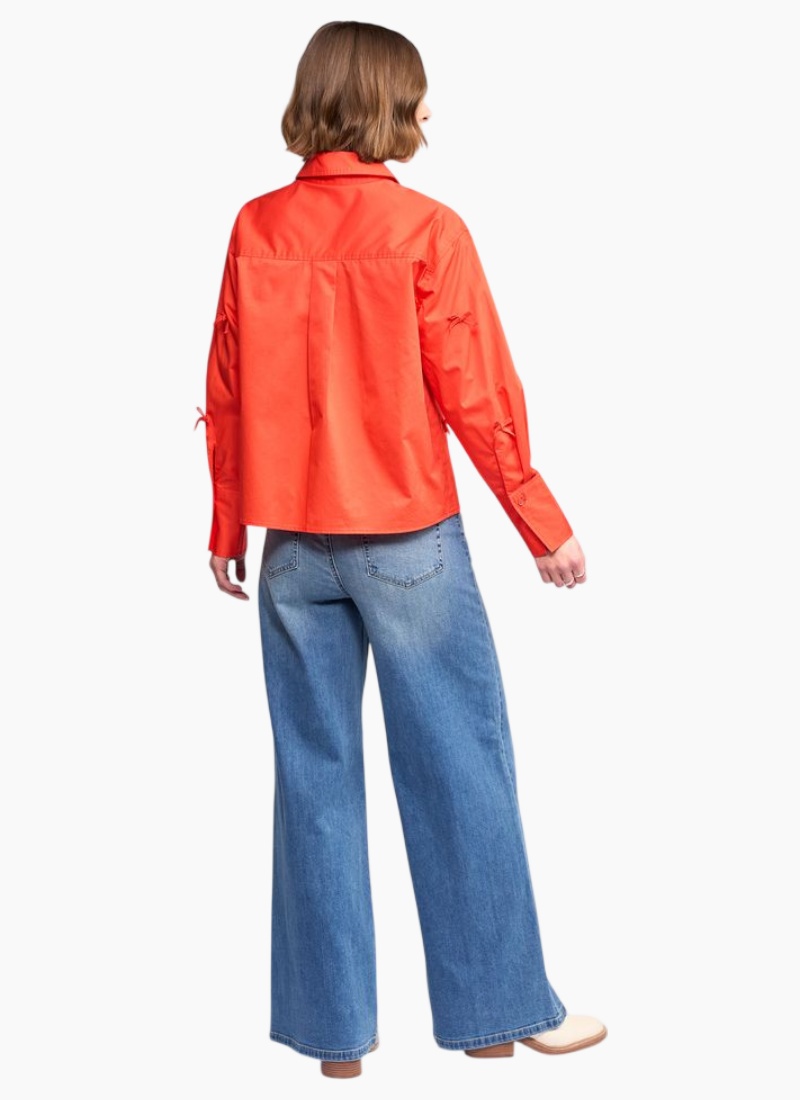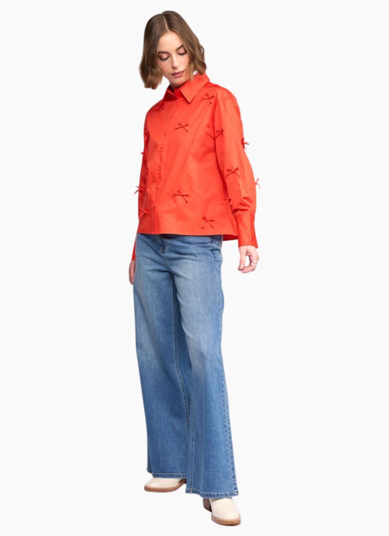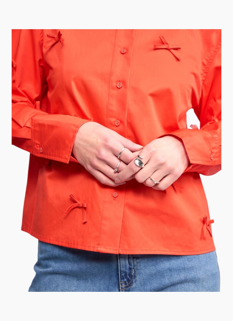 Introducing the BOW Shirt - Orange from Knewe. This playful shirt brings a fresh, modern note to your wardrobe with eye-catching bow details and a crisp finish.