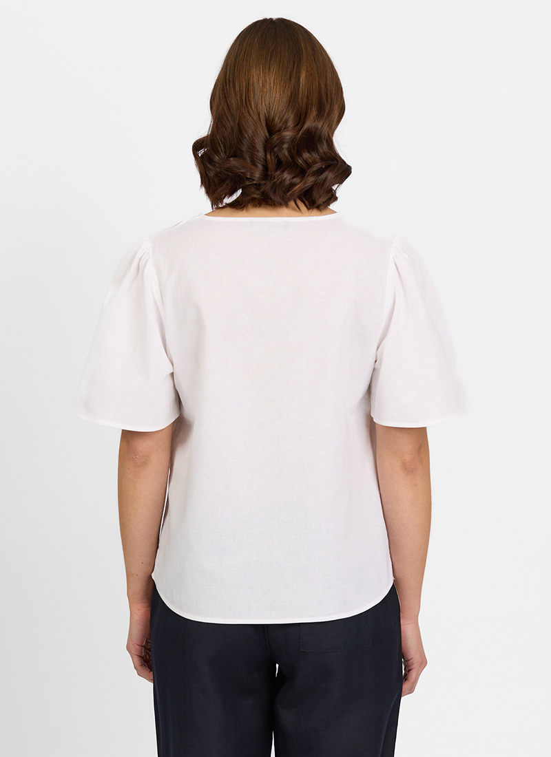 • Short floaty sleeves with gather along the shoulder