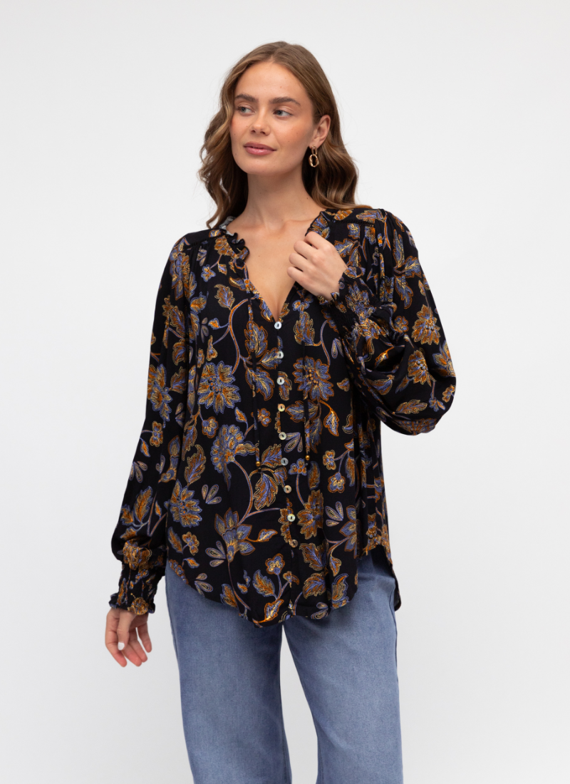 Introducing the Enchanted Ink Blouse from Label of Love. This effortlessly feminine blouse blends romantic detailing with everyday ease.