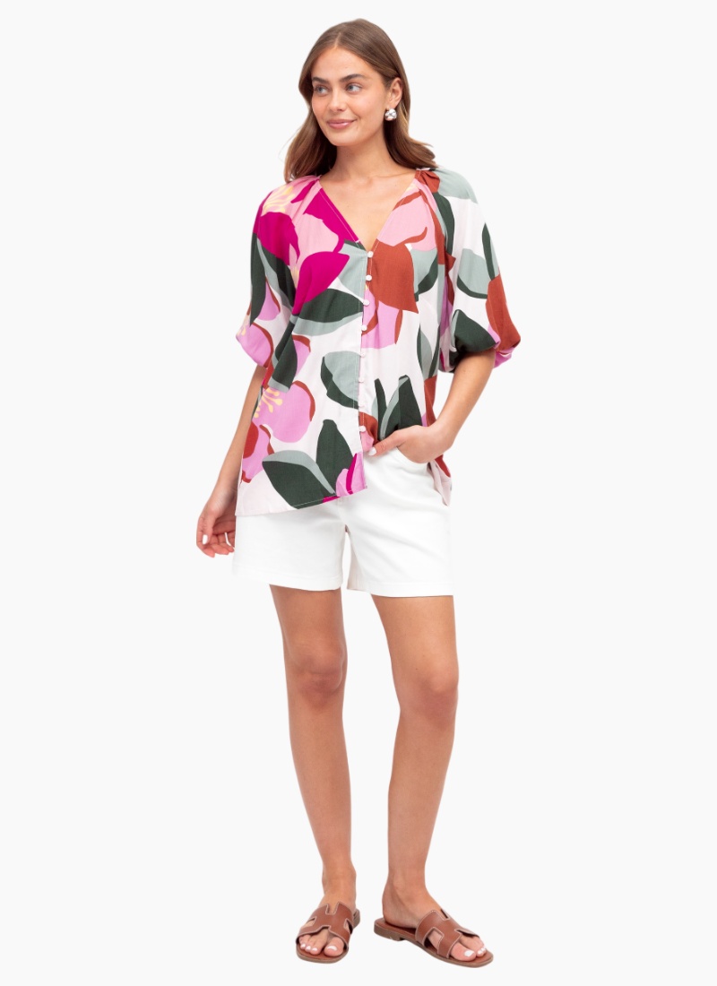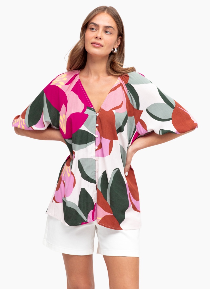 Introducing the Perdita Blouse from Label of Love. A breezy, statement-making shirt that balances bold florals with a relaxed, wearable silhouette.