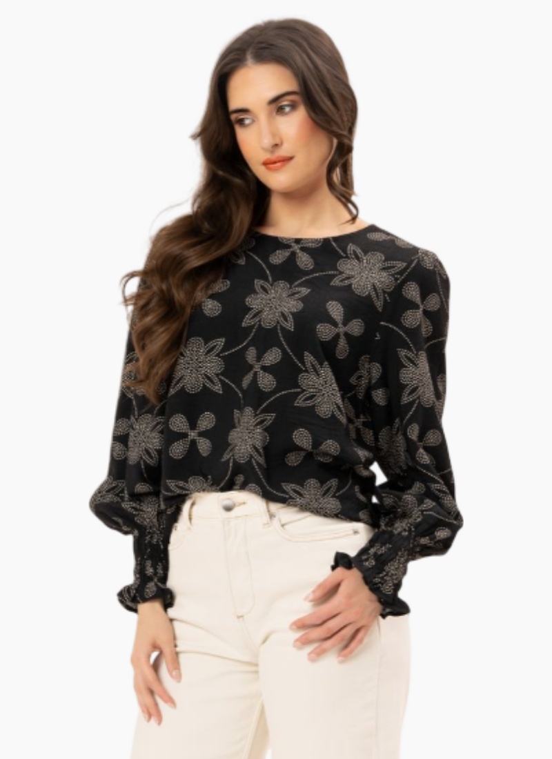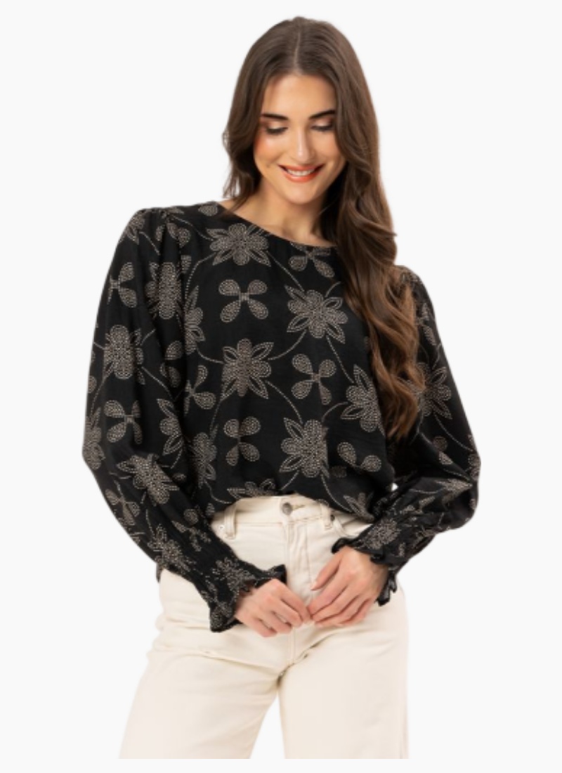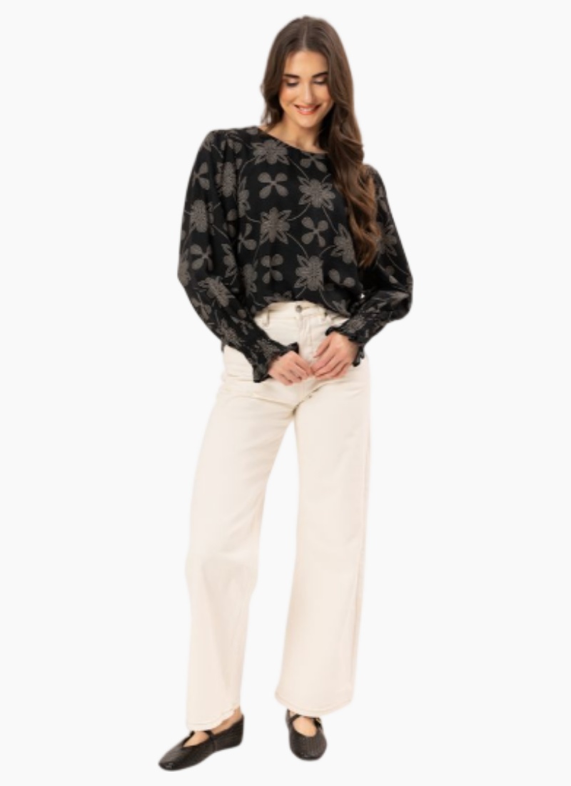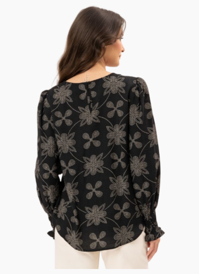 Introducing the UNION TOP from Leila + Luca. A graceful black floral blouse that brings effortless elegance to everyday dressing.