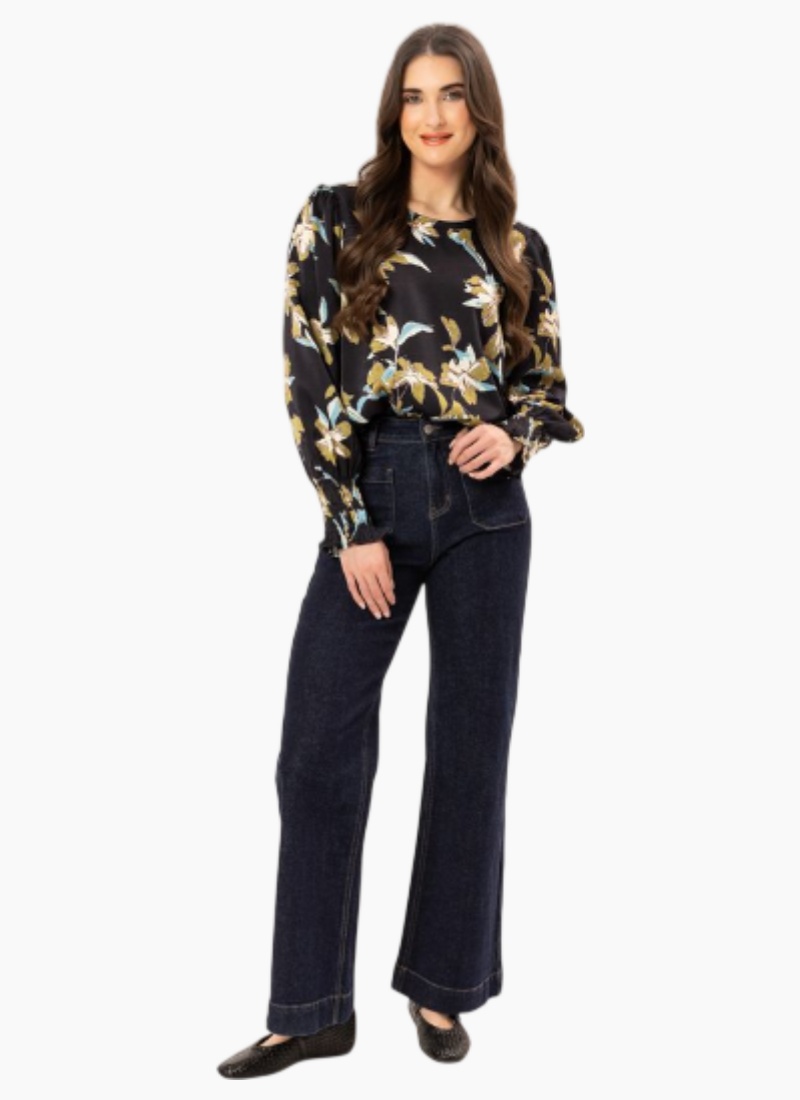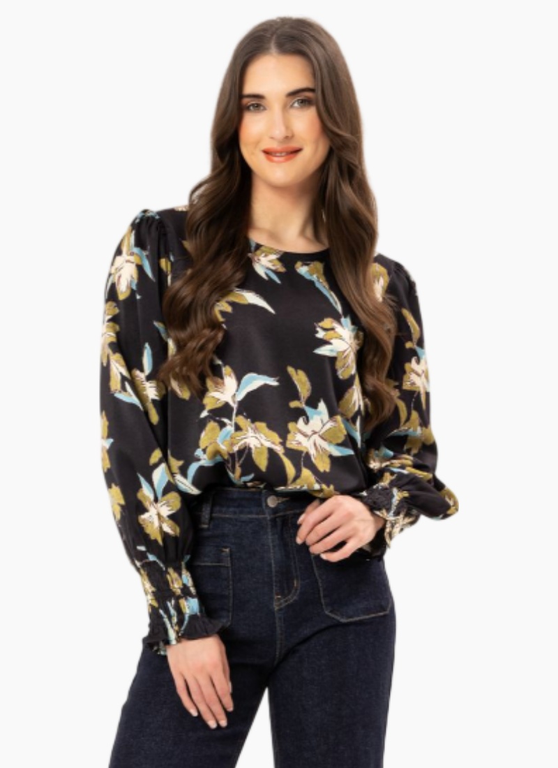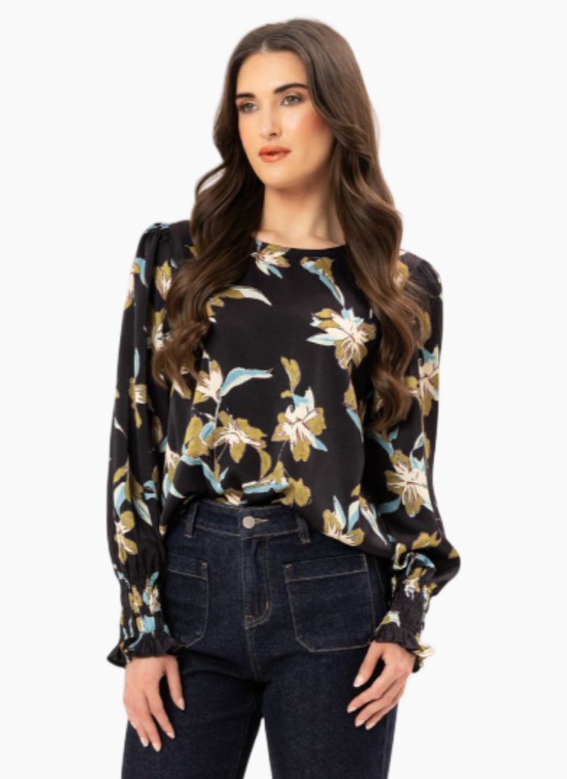 Introducing the UNION TOP SATIN DREAM from Leila + Luca. A luxe satin blouse in a striking black floral print, designed to lift both daytime and evening wardrobes.