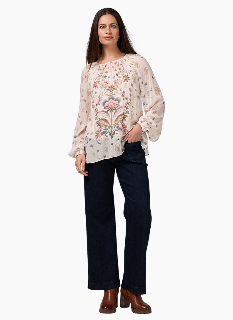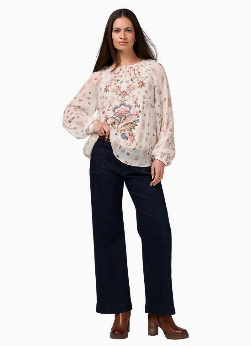 - Bone Multi from Loobies Story. A luminous blouse with an airy silhouette and romantic floral detail.