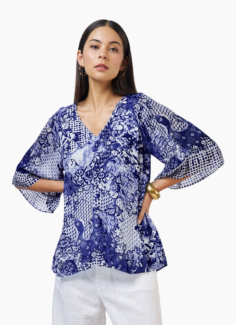 - V-neck and wide three-quarter sleeves create a flattering, easy-to-wear shape