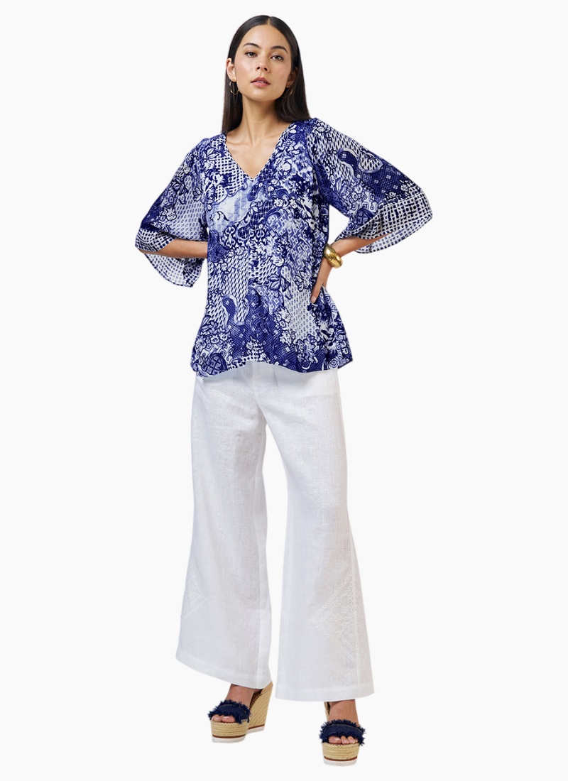 ARRIVING EARLY NOVEMBERIntroducing the Isla Blouse-Cobalt multi from Loobies Story. This breezy shirts & blouses piece showcases an artisan-inspired cobalt colourway and a relaxed, floaty silhouette.