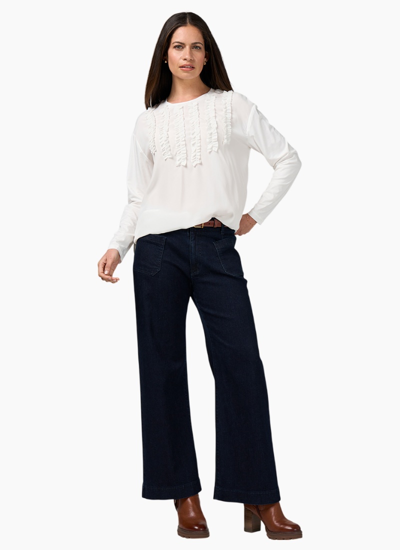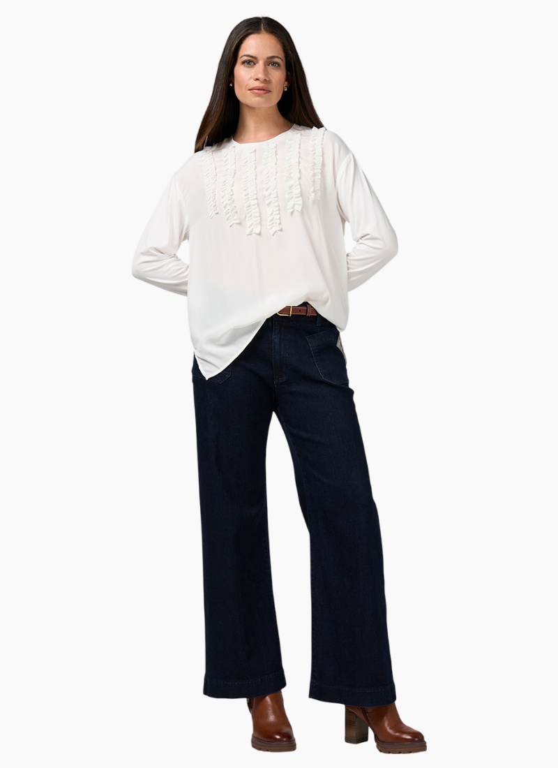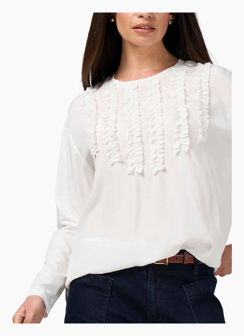 - Silk White from Loobies Story. A refined blouse that pairs delicate ruffle detailing with a fluid silk feel.