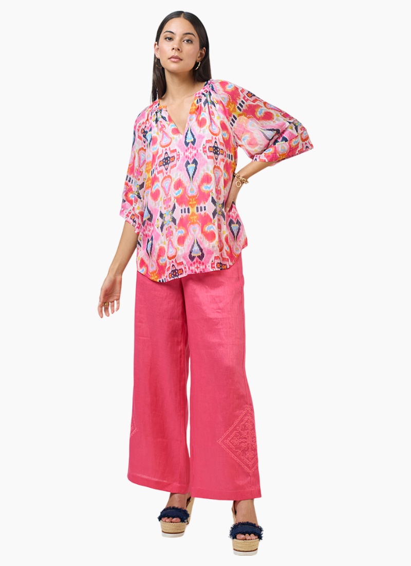 - Style with linen trousers or denim wide-leg pants for a chic, relaxed look; easy-care fabric makes it a practical wardrobe favourite