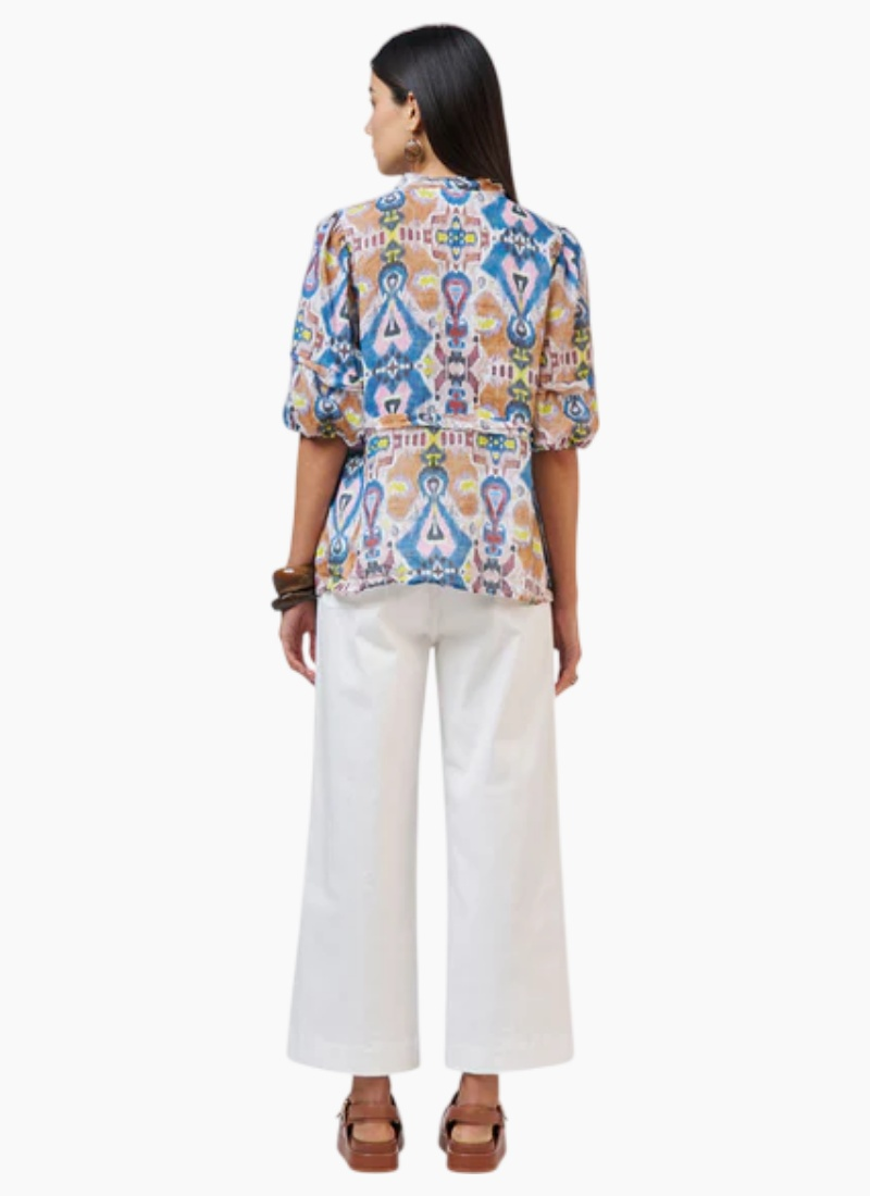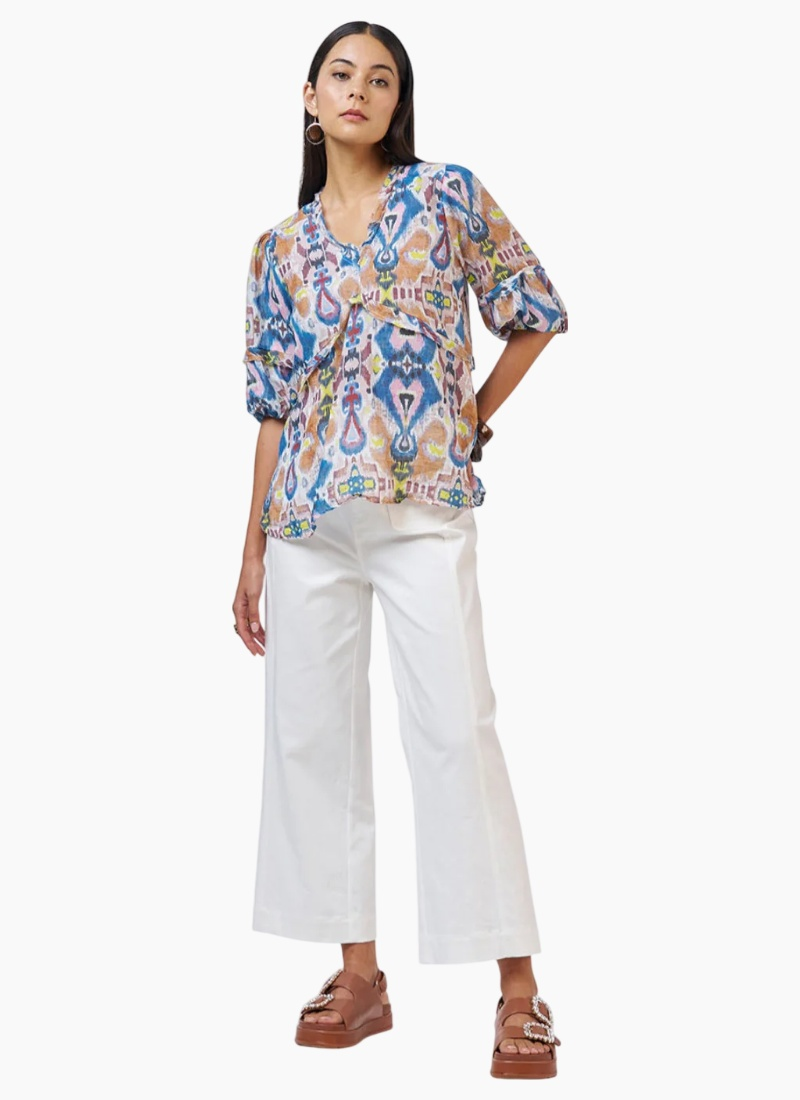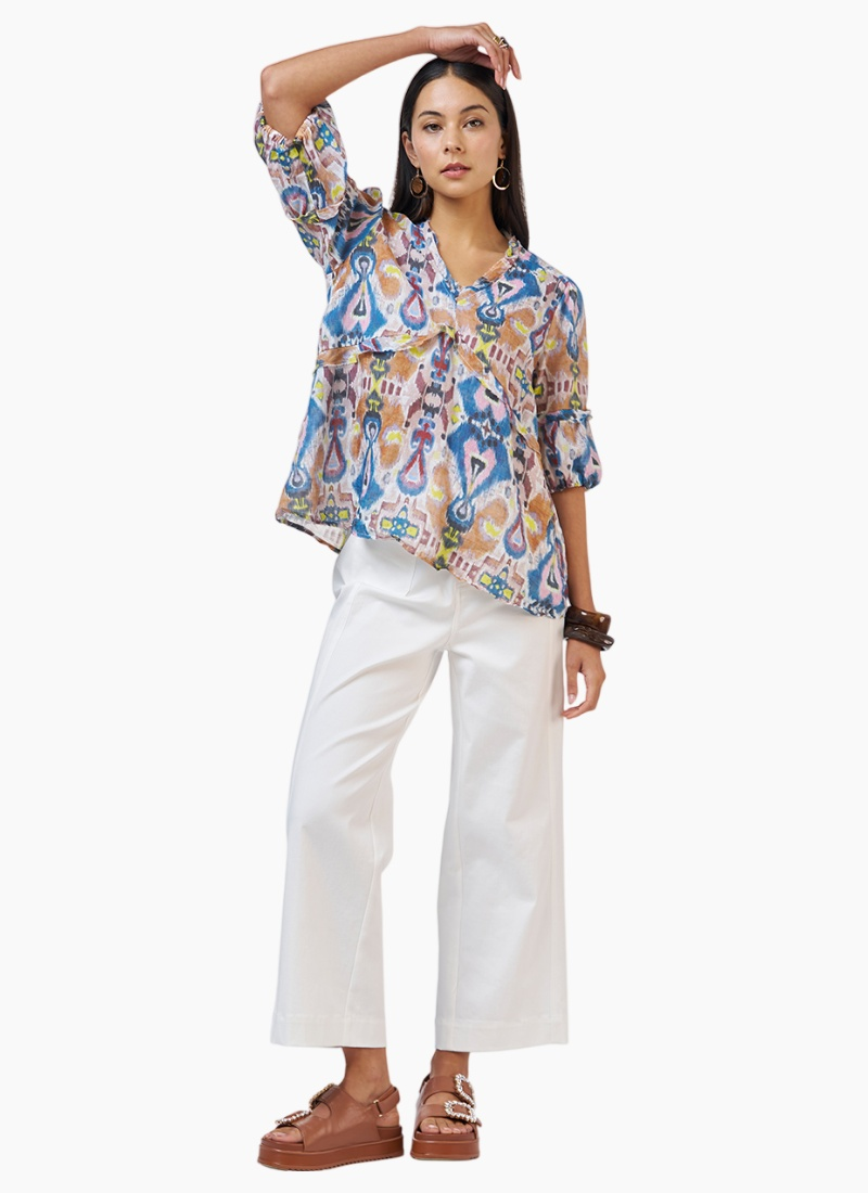Introducing the Tia Blouse from Loobies Story. This breezy, artful blouse brings instant personality to your wardrobe with a relaxed silhouette and lively print.