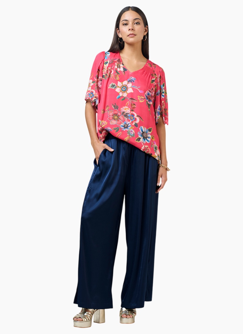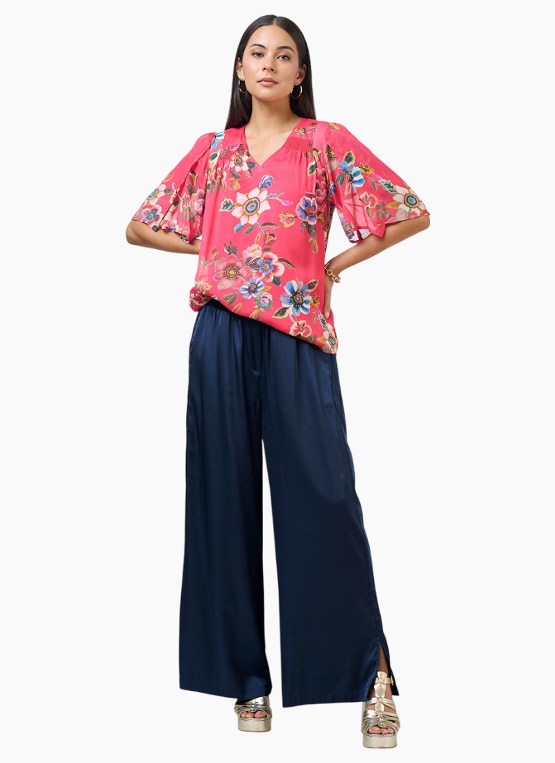 - Bold coral multi floral colourway makes it a standout Tops piece for day or evening