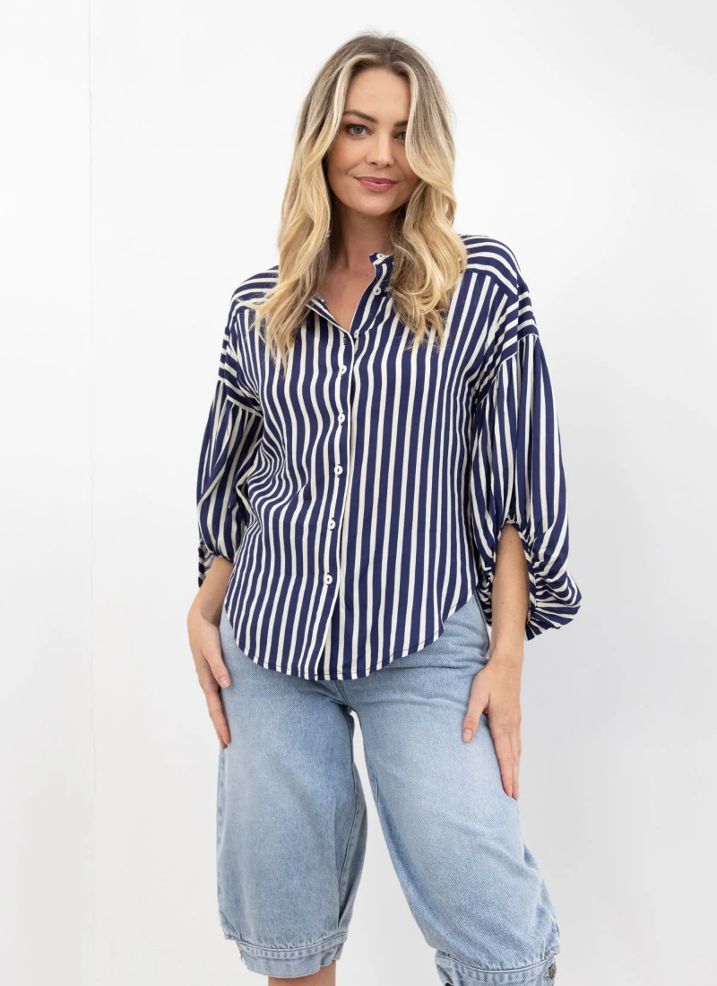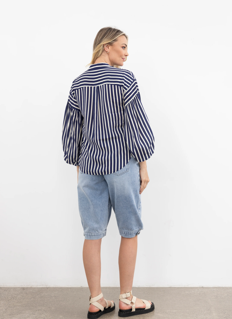 - Navy Stripe from Mi Moso. A timeless navy-striped shirt crafted for effortless everyday style.